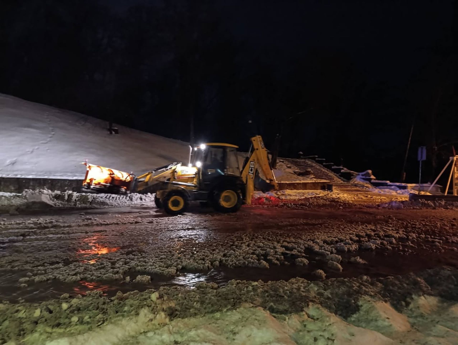"Поки більшість містян відпочиває, наші комунальники — під дощем, у холоді та в нічний час — вже на місці, роблять свою справу: розчищають, контролюють ситуацію, аби місто прокинулося без зайвих проблем", — розповідали у міській раді.