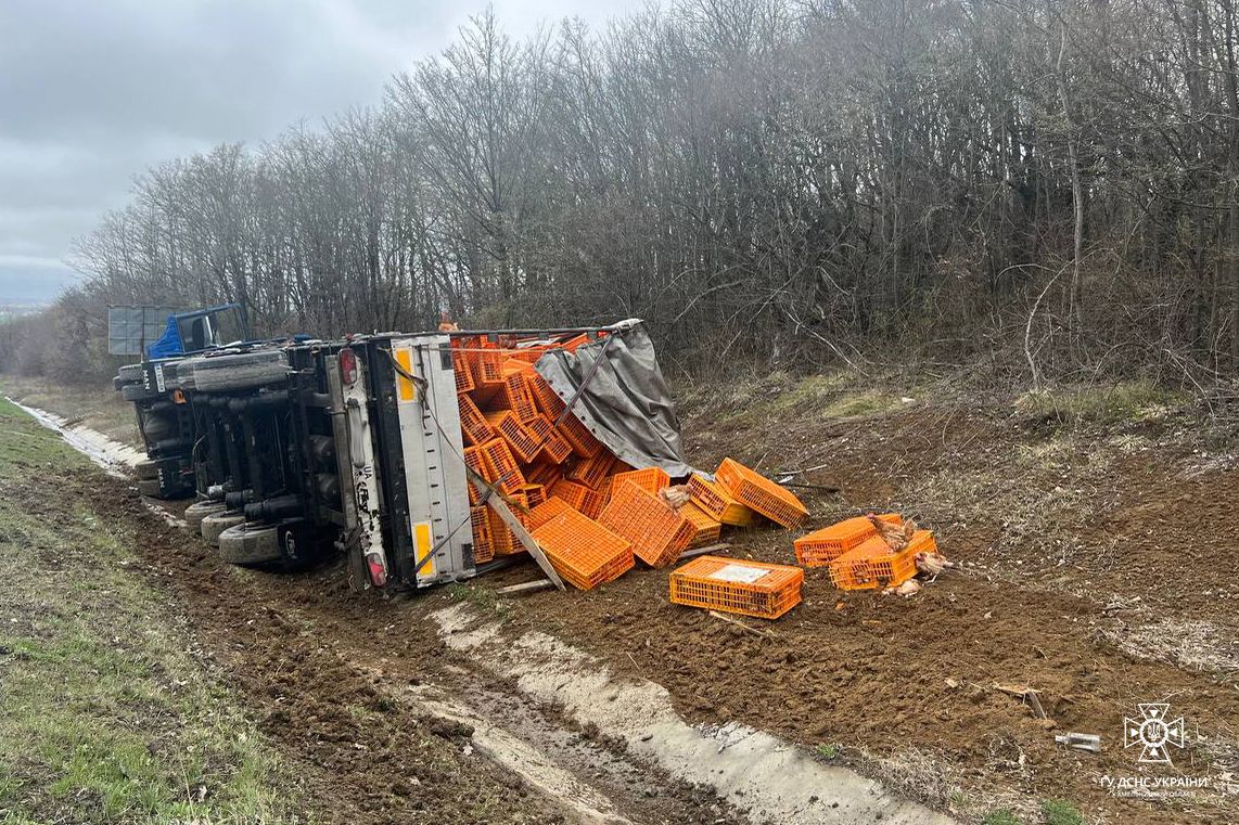 Водій – у лікарні, кури – на дорозі: на Кам’янеччині перекинулася вантажівка