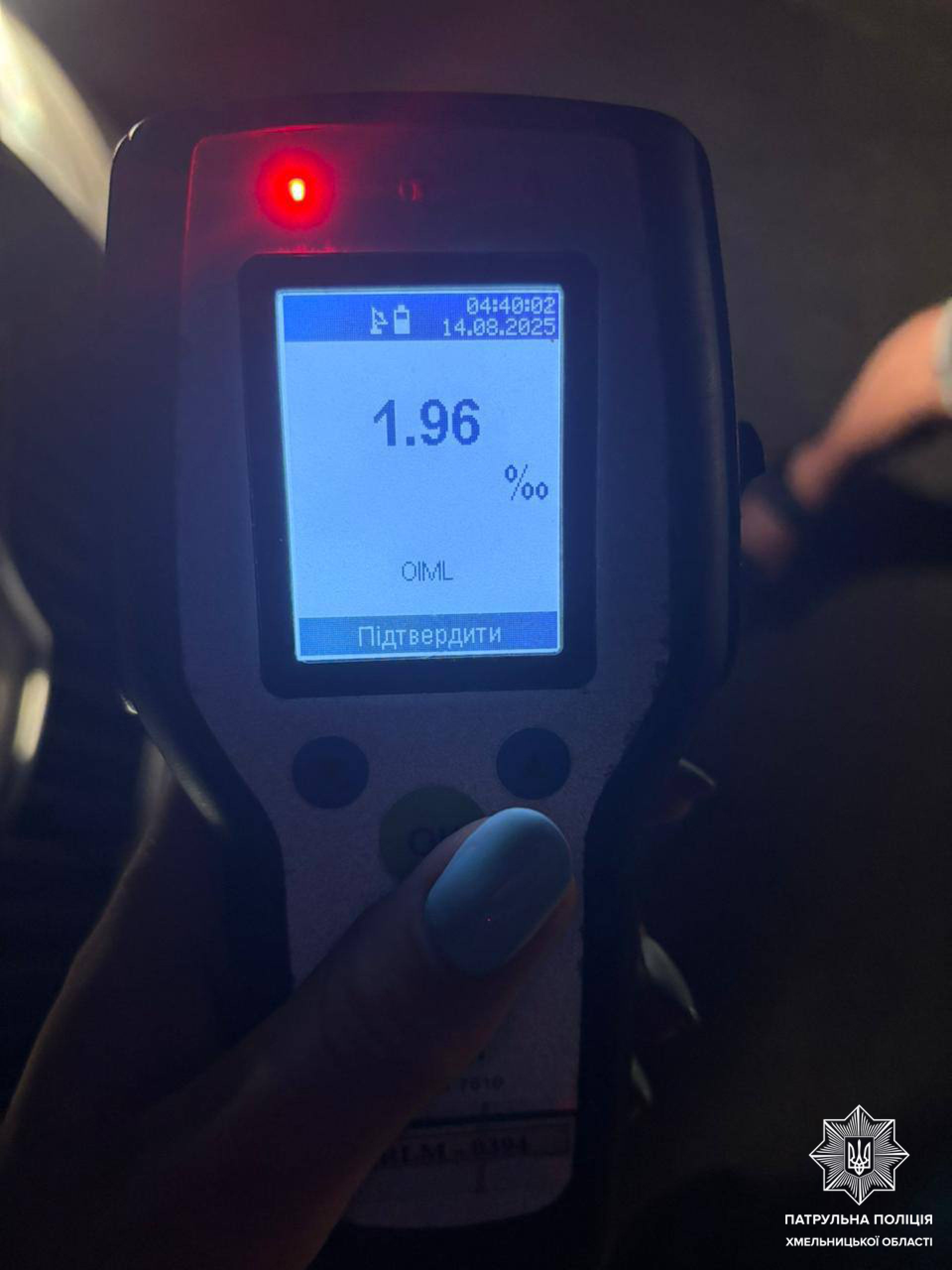 У Хмельницькому патрульні задокументували водія, який їздив нетверезим вулицями міста. Норма алкоголю в його крові була перевищена у 9 разів. Про це повідомили у пресслужбі Патрульної поліції.
