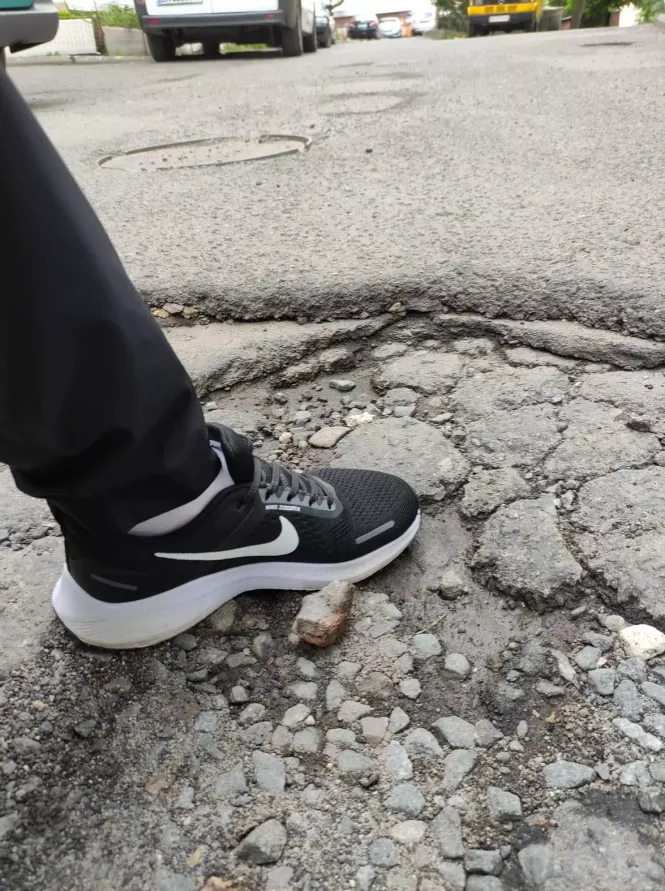 - Ями біля під’їздів, аварійна підпірна стінка і відсутнє вуличне освітлення.