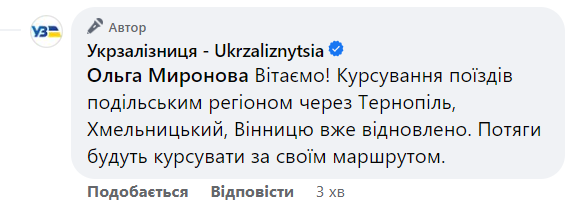 Додамо, що станом на 15 годину Укрзалізниця в коментарі зазначає, що рух ділянкою вже відновили: