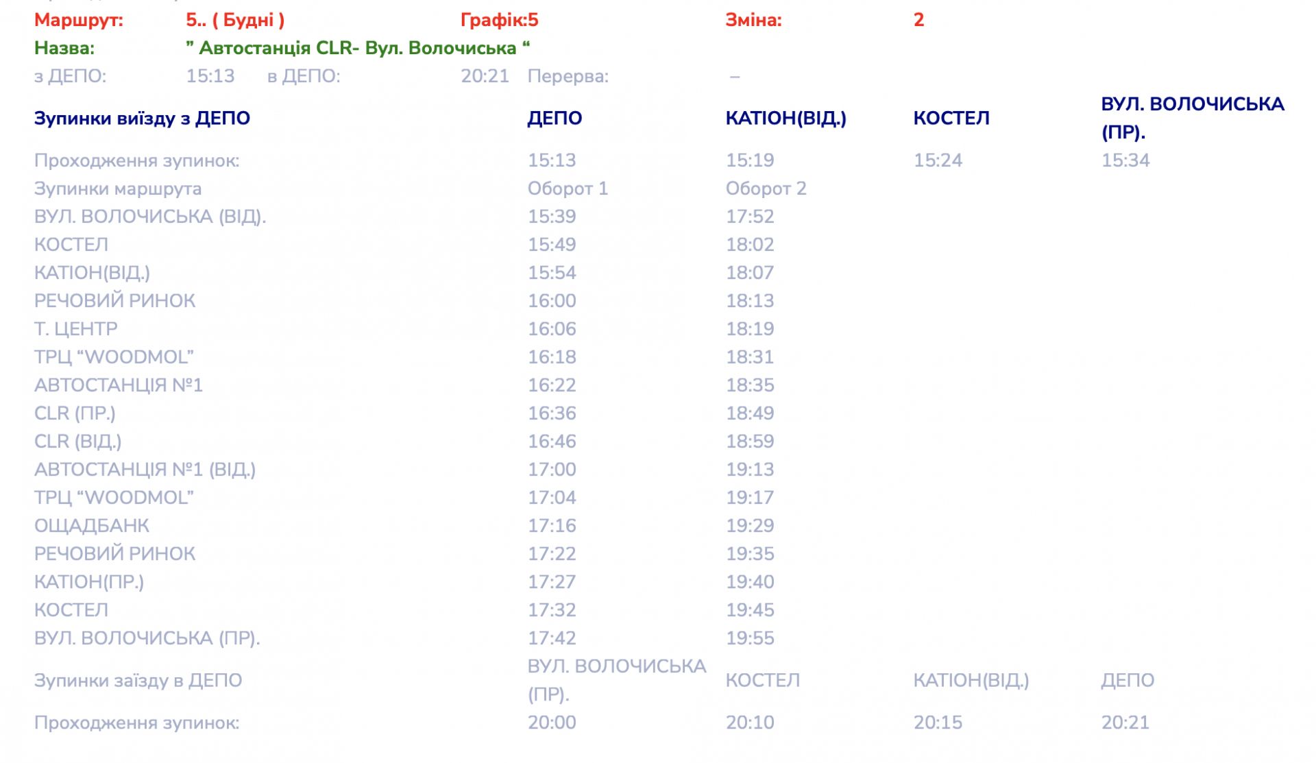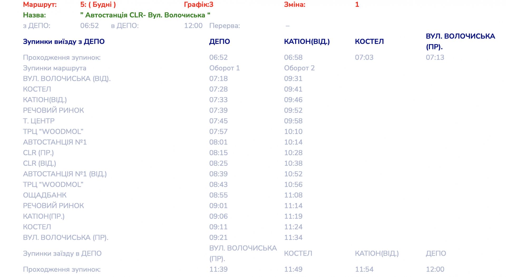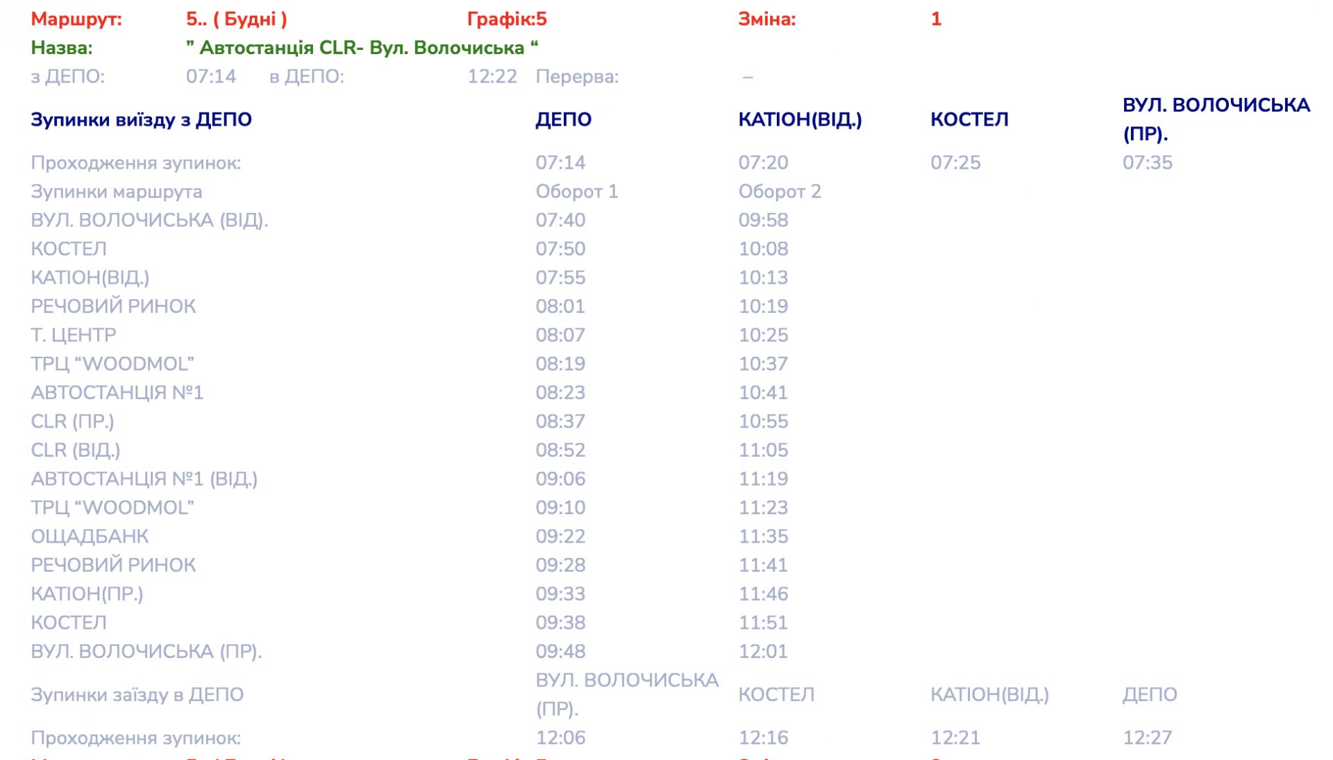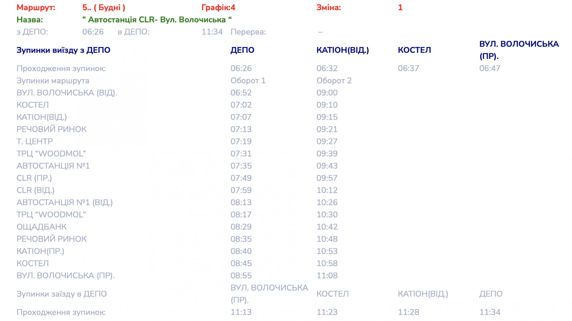 Детальні графіки руху маршруту №5 переглядайте далі: