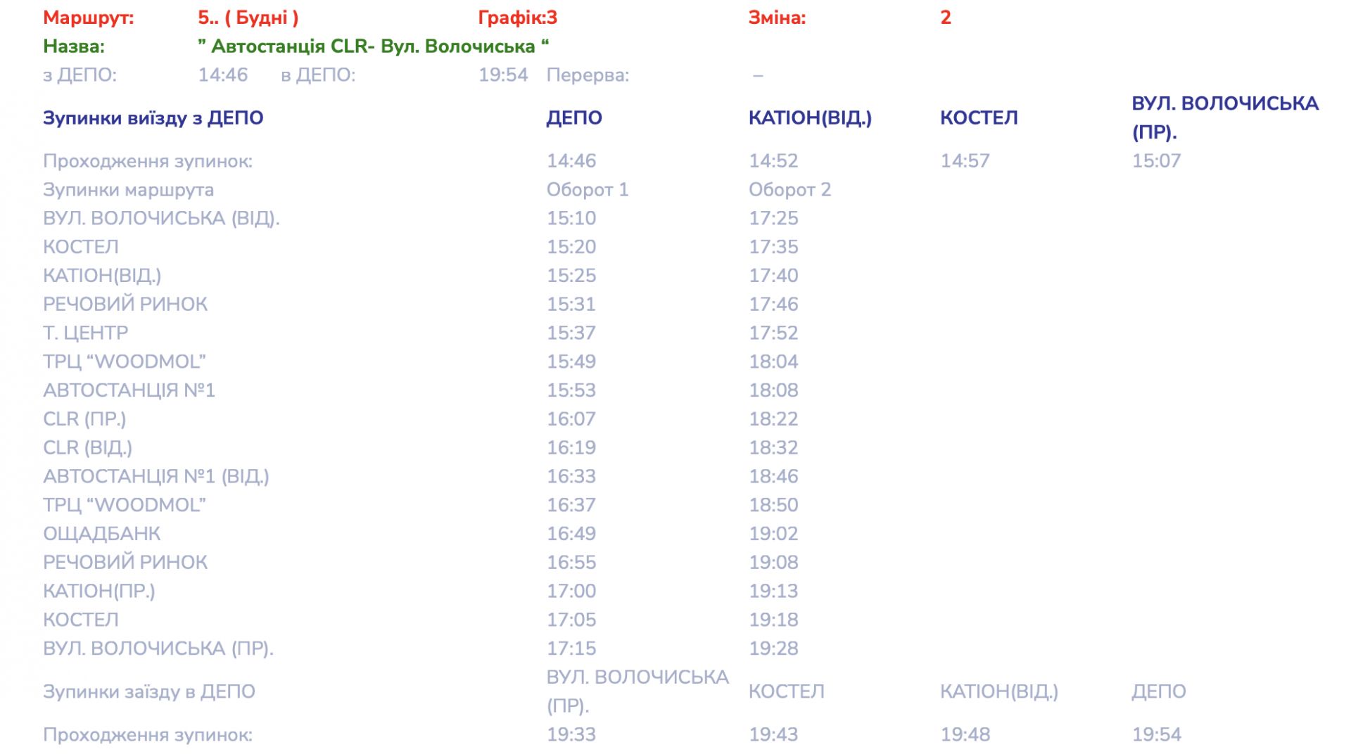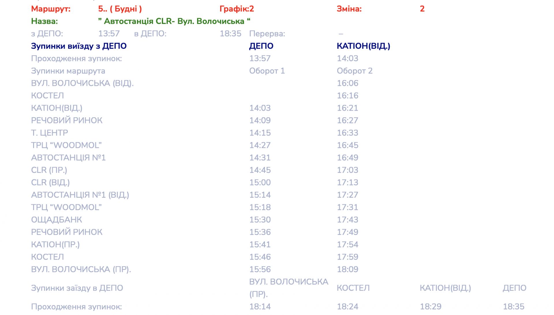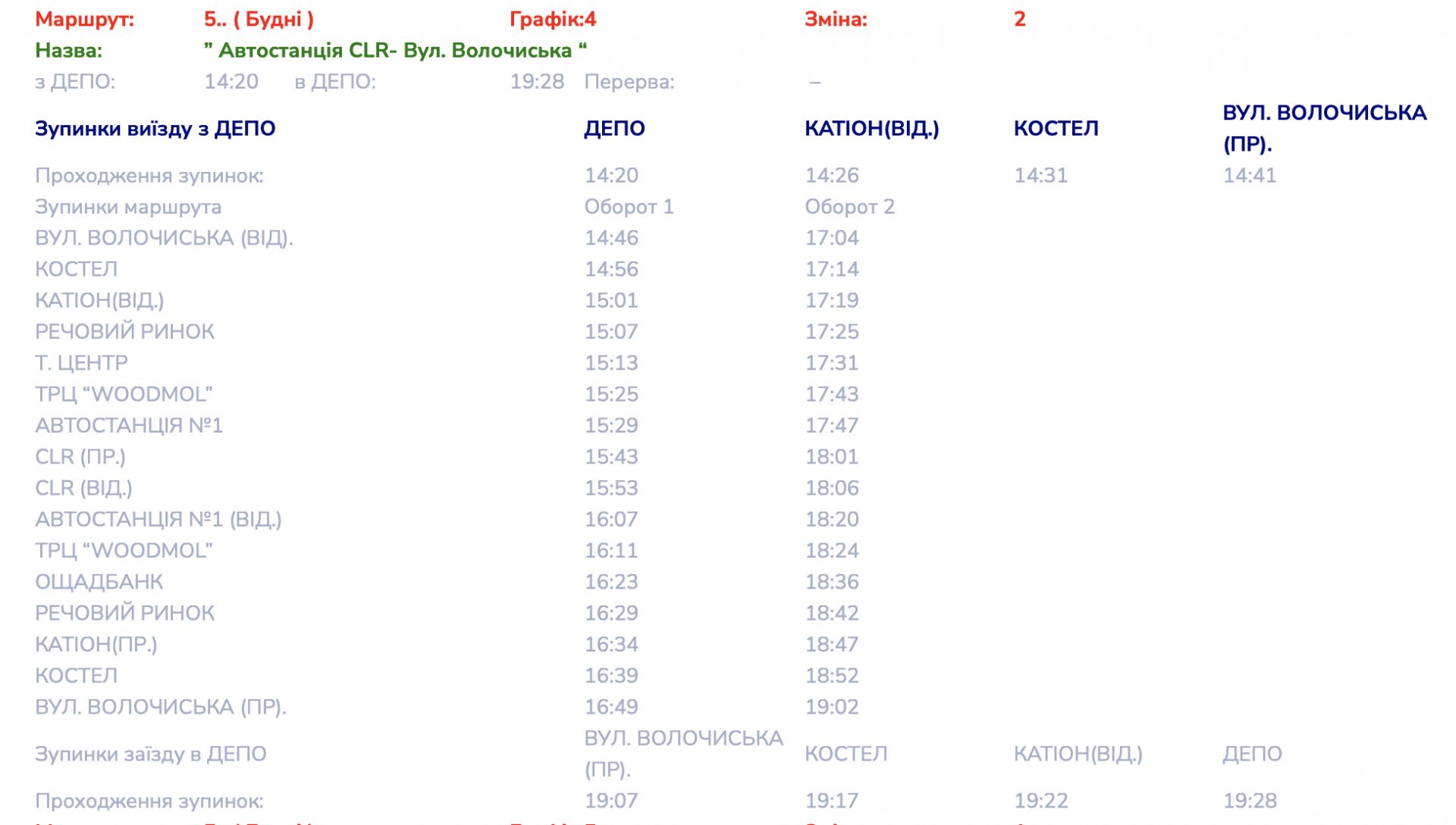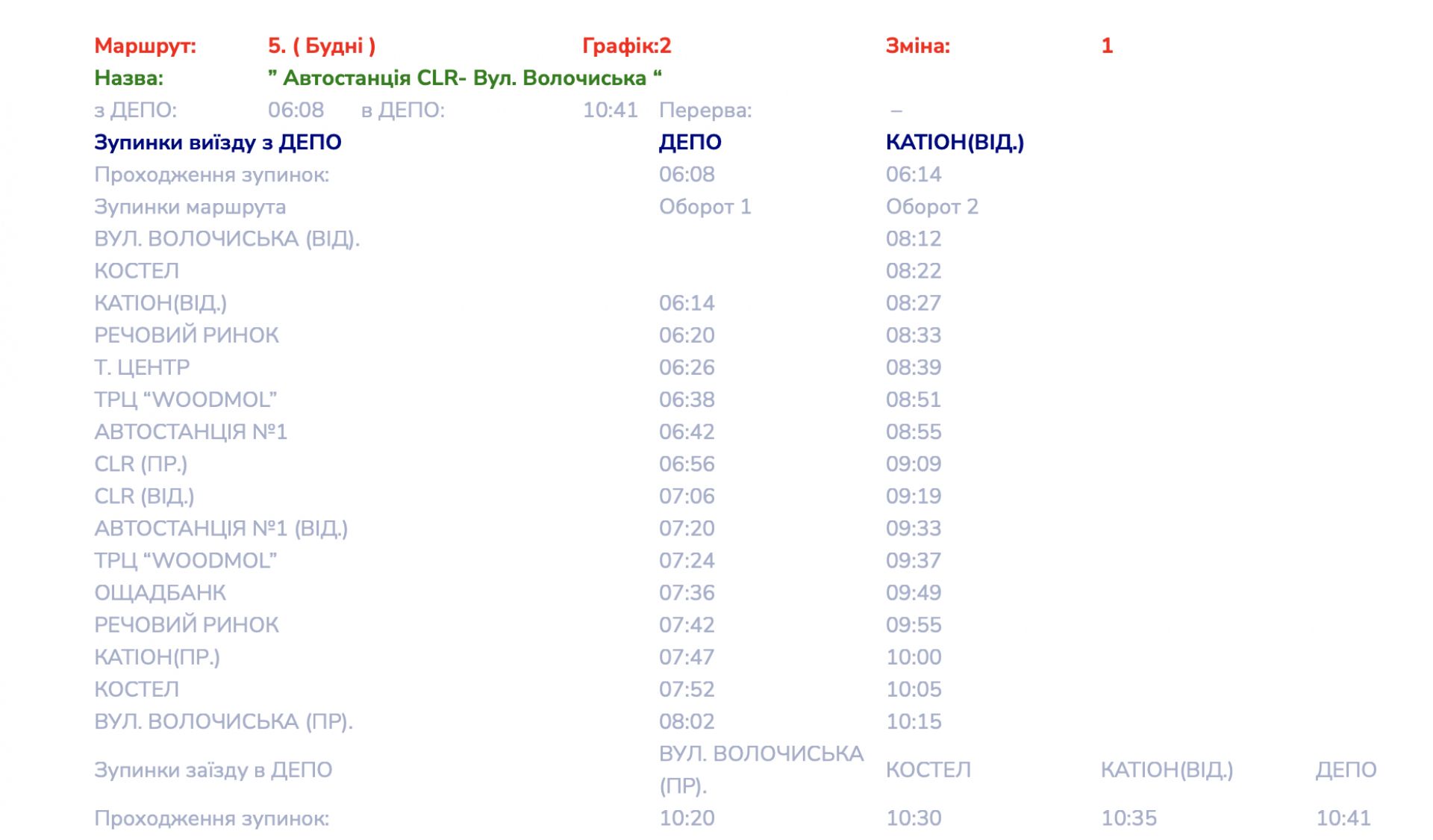 Детальні графіки руху маршруту №5 переглядайте далі:
