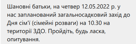 До слова, розважальні сімейні заходи планують провести також і в міських дитсадках. Про це батьків повідомляють у групових месенджерах.