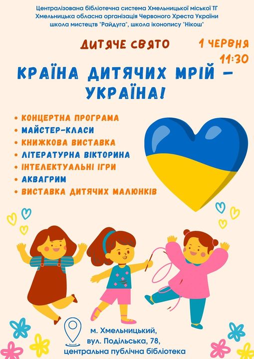 11.30 - дитяче свято «Країна дитячих мрій – Україна!», у рамках відкриття «Бібліотечного літа».