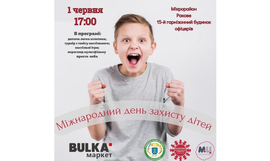 17.00 - змагання з дитячої легкої атлетики, турнір із настільних ігор, турнір з тенісу настільного, перегляд мультфільму просто неба.
