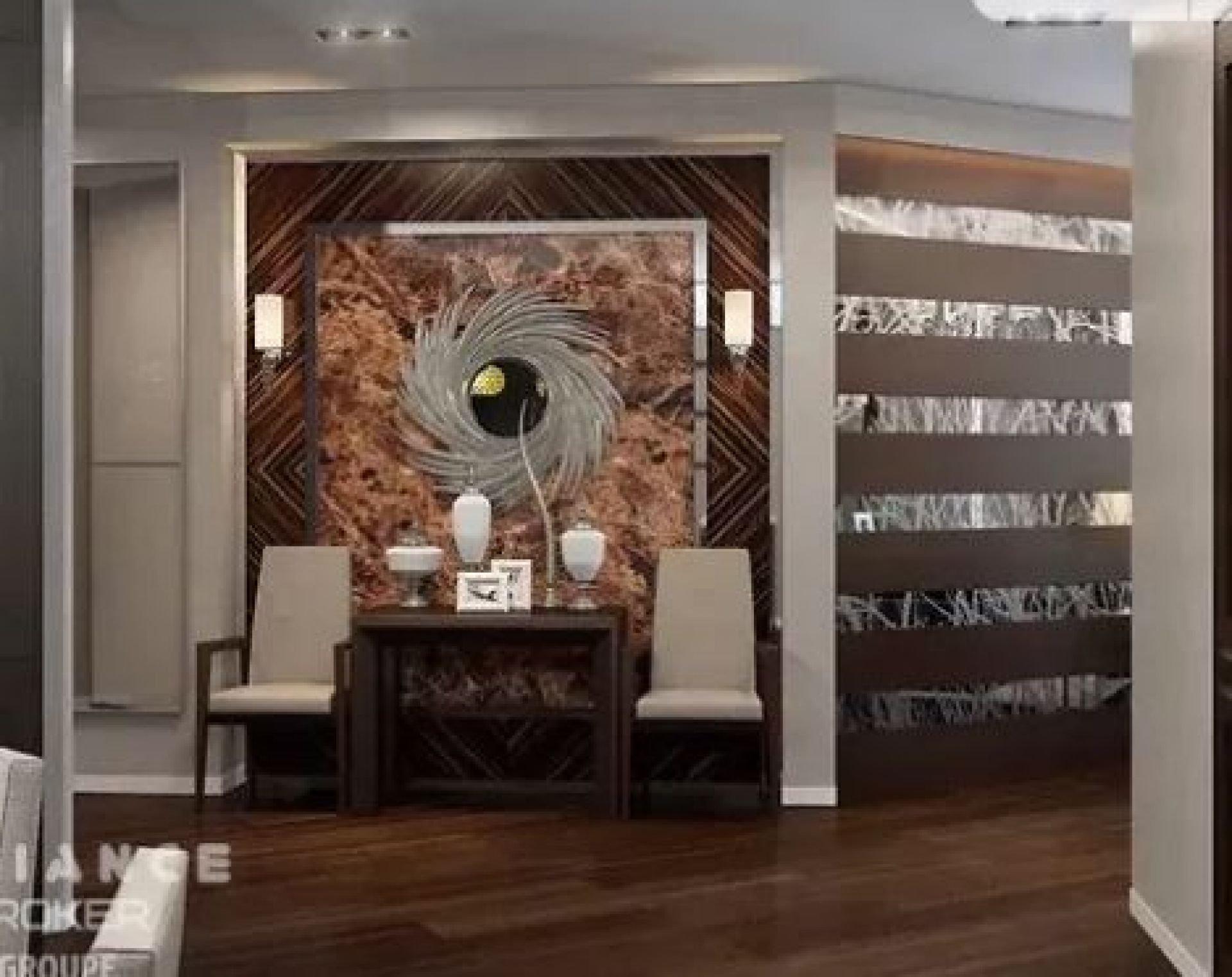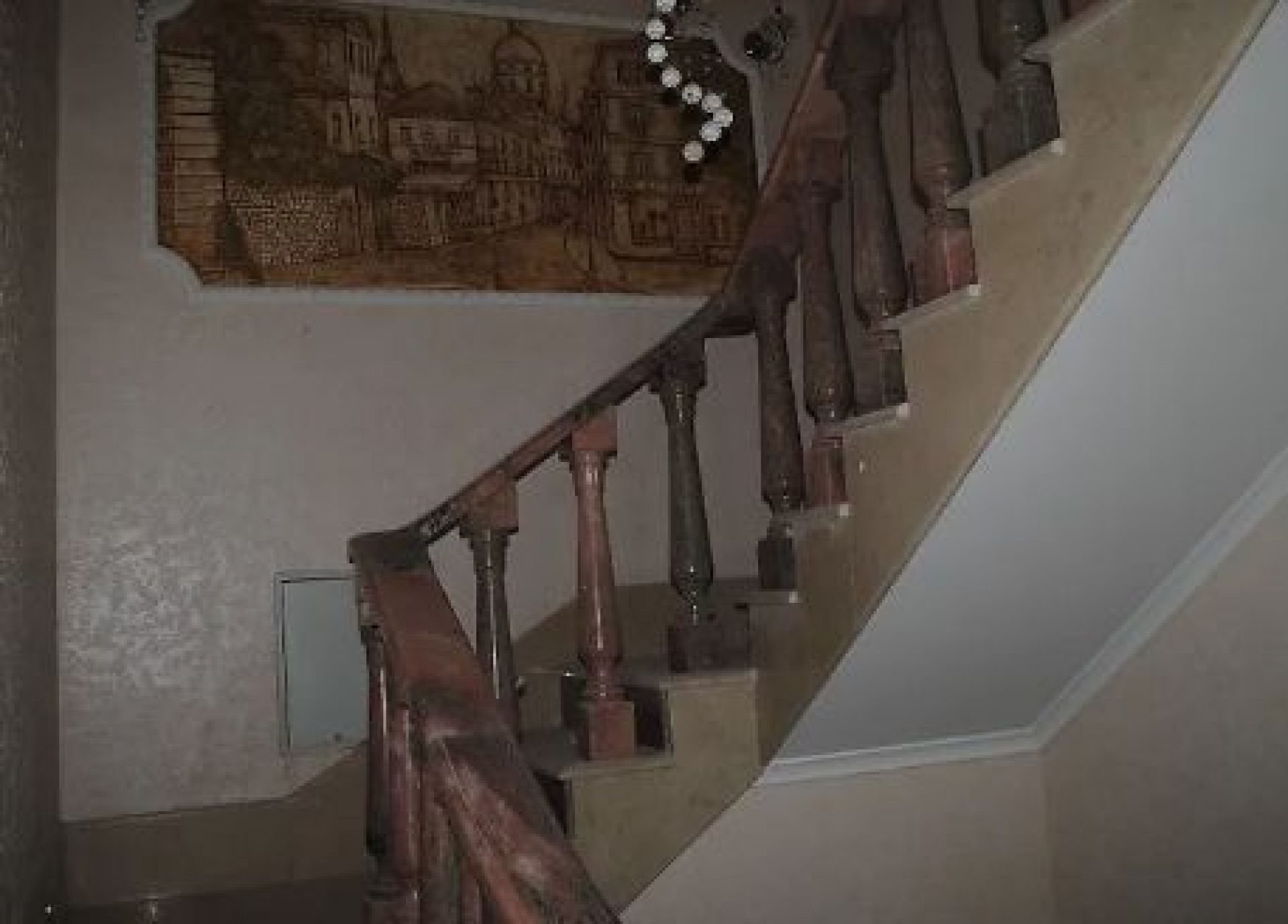 Квартира є багаторівневою. Вона розміщена на 6 поверсі. Особливістю цього помешкання є мармурові сходи за 30 тисяч доларів, кухня-студія та елітний ремонт.
