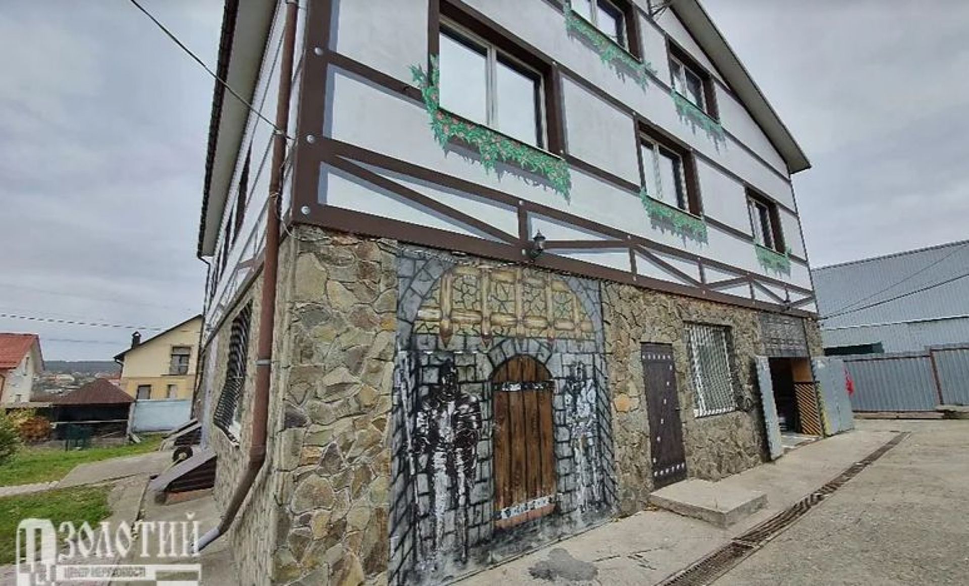 Опис: Є свій паркінг перед будинком. У дворі велика альтанка з мурованим мангалом, доріжки з тротуарної плитки. Будівля складається з трьох поверхів і мансардного даху. Є підвал.