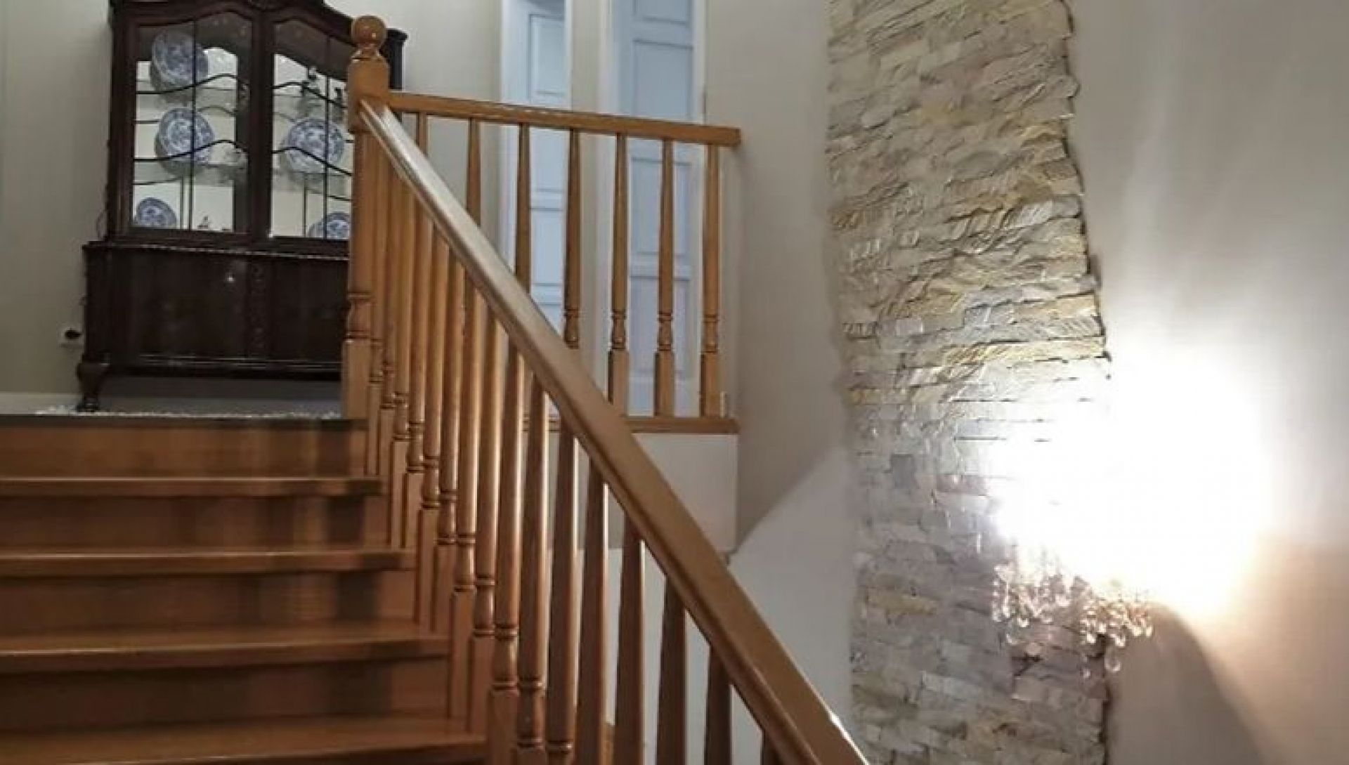 Є два житлові поверхи й цоколь. Всього - 5 житлових кімнат, в тому числі три спальні, кабінет, два санвузли, кухня-їдальня, велика гардеробна, комора. Комунікації: опалення - індивідуальне, є свердловина, септик і центральна каналізація.