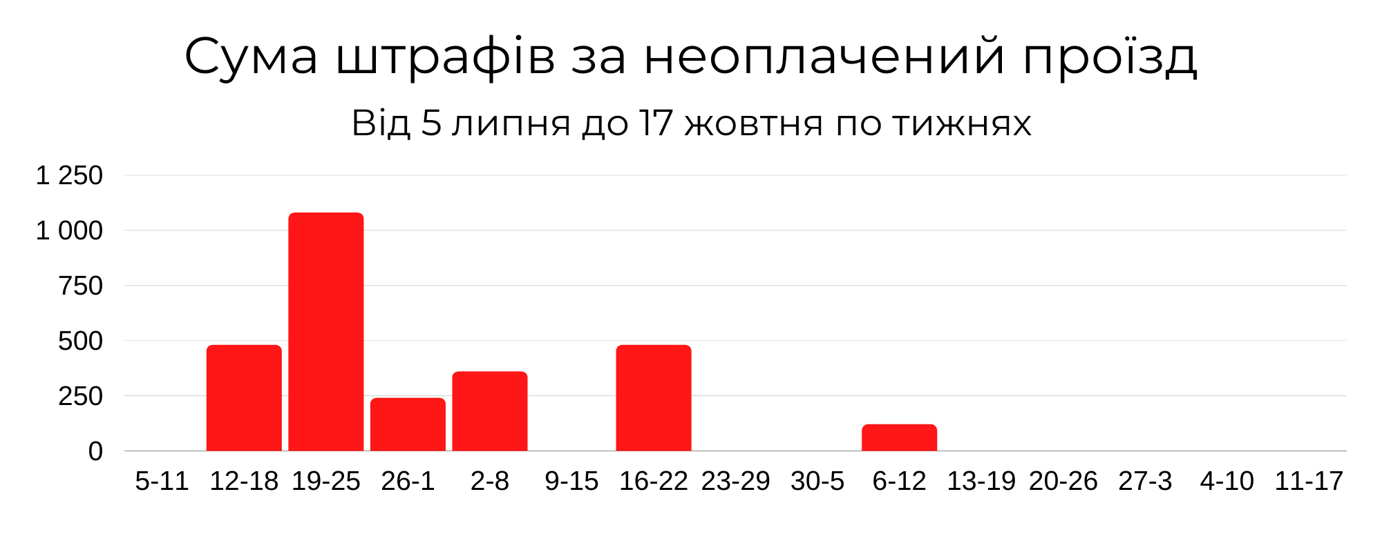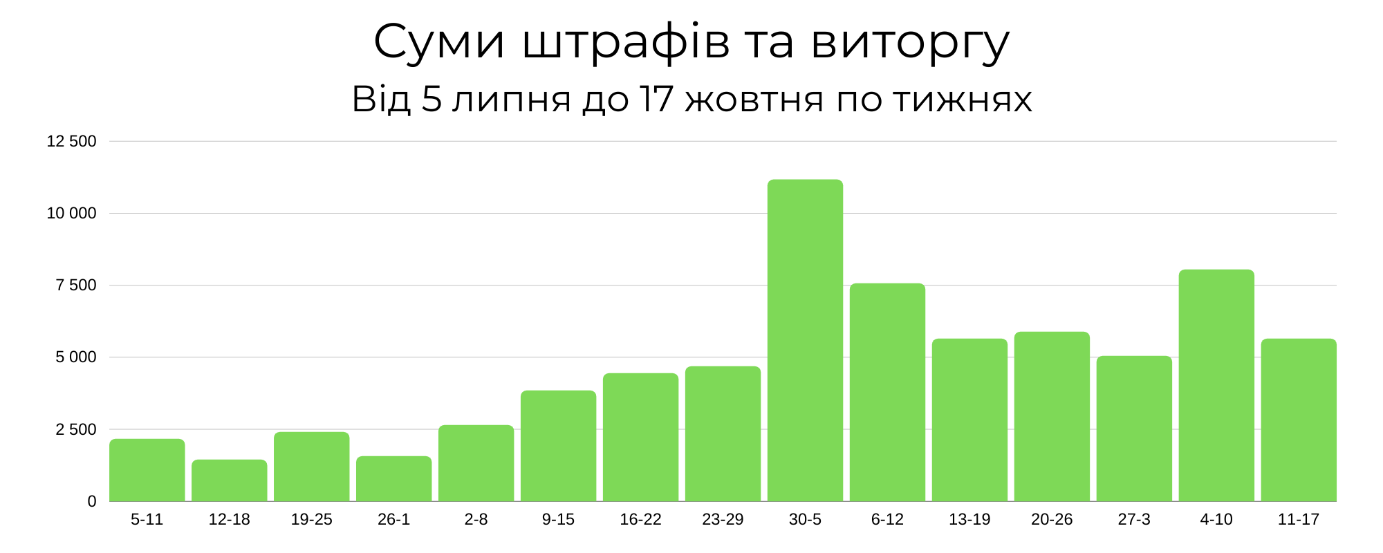 Детальні дані щодо штрафів та підвищеної вартості можна переглянути в інфографіці. Показники згруповані за тижнями, тому для підготовки використані дані тільки повних тижнів, тобто період від 5 липня до 17 жовтня.