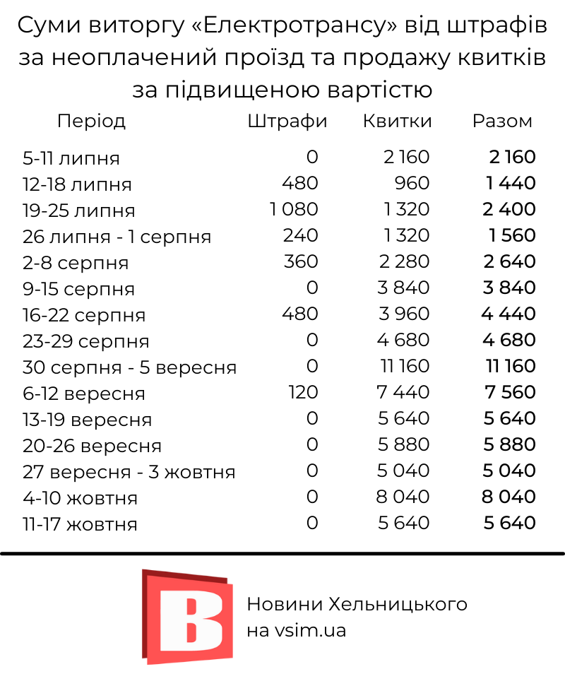Від 1 липня до 19 жовтня контролери «Електротрансу» стягнули з пасажирів 75 120 гривень. Такі дані нам надало підприємство у відповідь на запит. Ця сума включає: