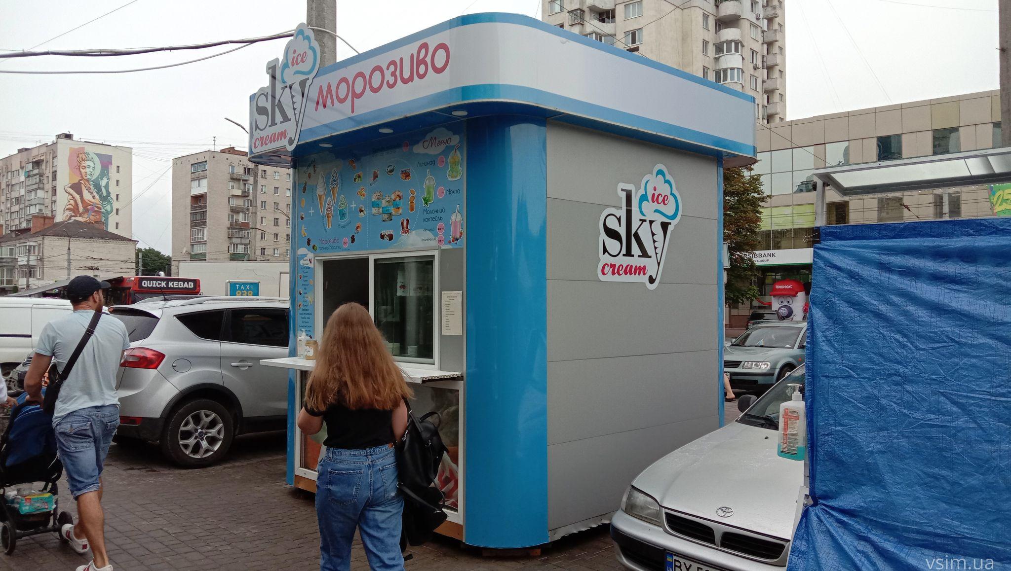 На початку червня цього року біля ТРЦ «Либідь Плаза» з’явився кіоск з морозивом. Він розміщений поряд із парковкою на «прохідному» місці. Щодня споруду минають тисячі хмельничан. Встановили кіоск на земельній ділянці, яка є приватною власністю «Либідь Плази». Цільове призначення ділянки — «Для будівництва та обслуговування будівель торгівлі».
