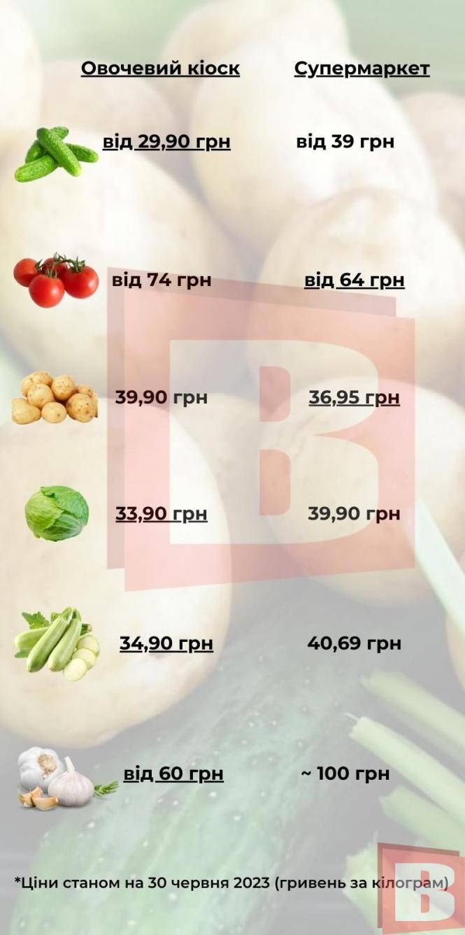 В овочевому кіоску наш овочевий набір буде 273 гривні, у супермаркеті - 324 гривні.