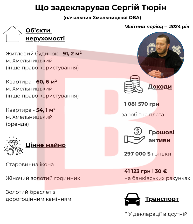 Декларація Сергія Тюріна: скільки заробив і які статки має голова Хмельницької ОВА