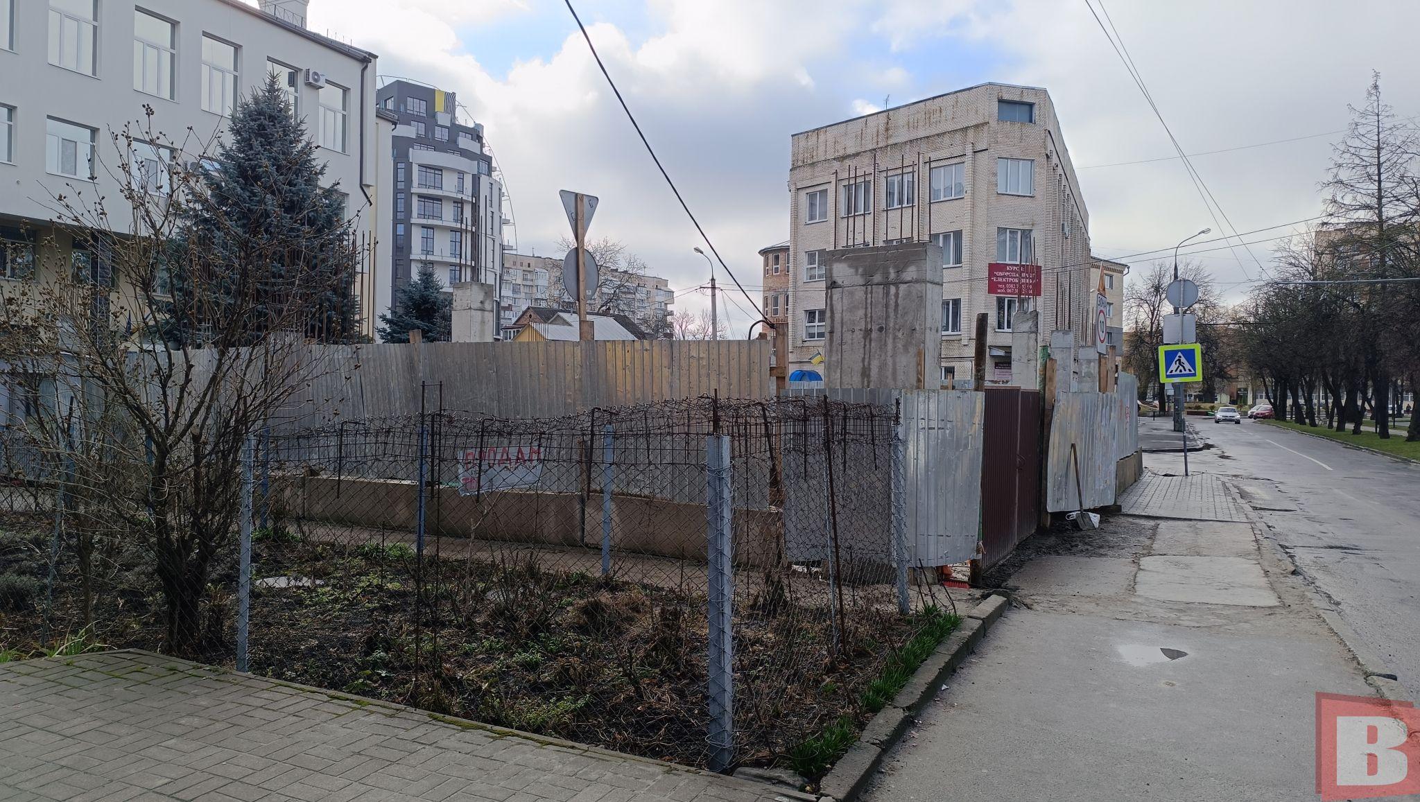 На перехресті вулиць Пилипчука та Свободи у центрі Хмельницького донедавна було розташоване кафе. Нині ж його немає і там триває будівництво. Територія обгороджена будівельним парканом, за яким видніються залізобетонні колони. Так усе виглядало під час візиту журналіста vsim.ua сьогодні, 21 лютого.