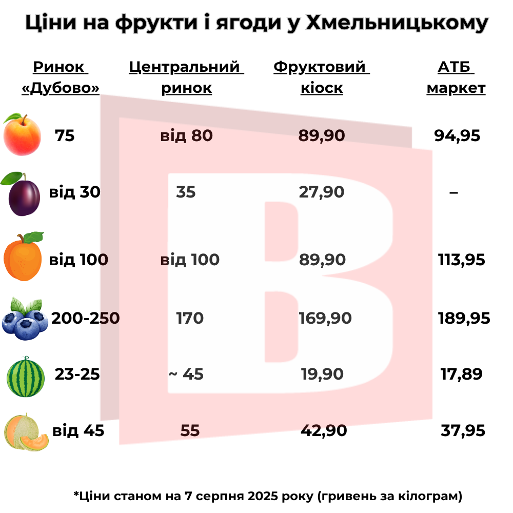 Диня, персики і лохина: які ціни на фрукти і ягоди у Хмельницькому