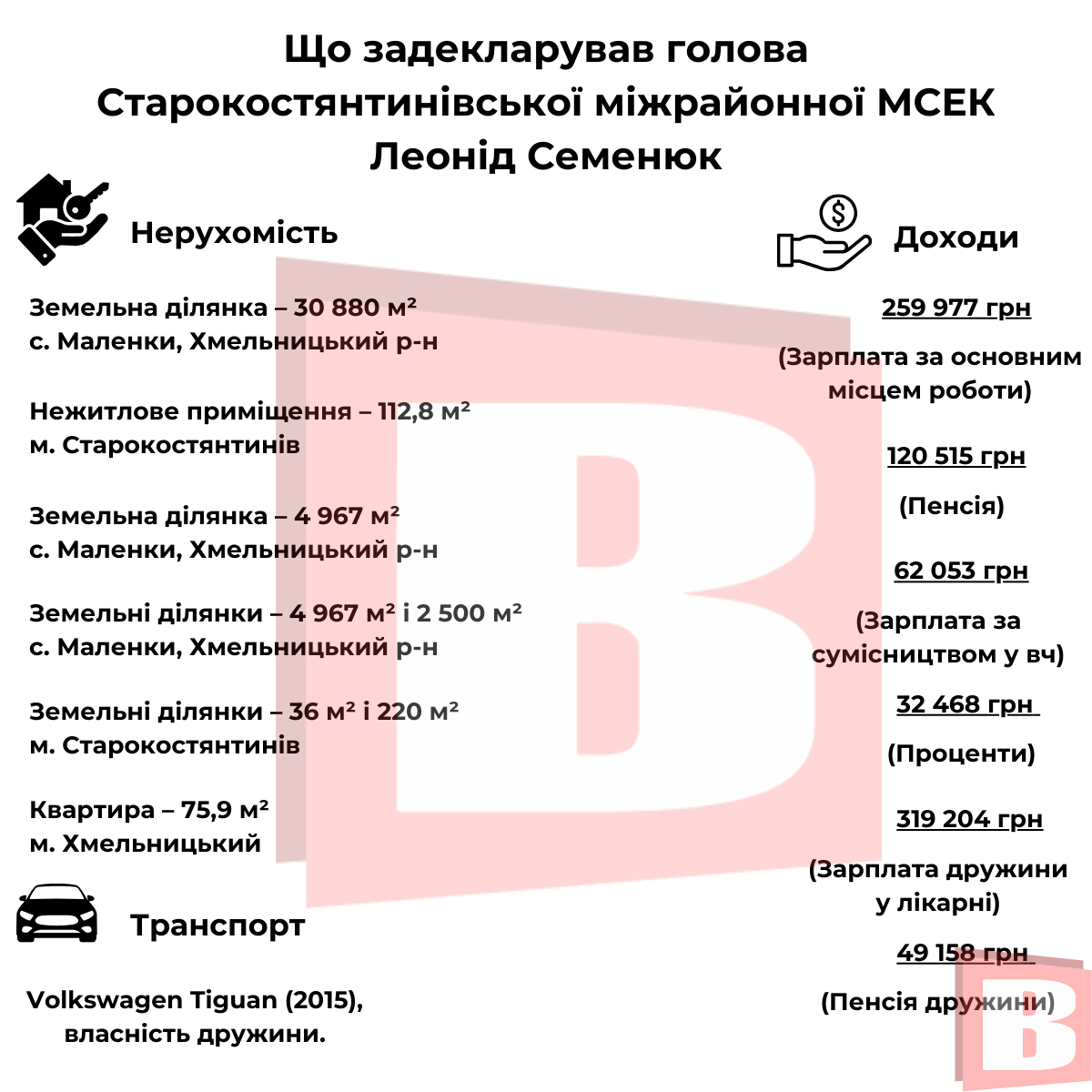 За основним місцем роботи Леонід Семенюк отримав в минулому році 259 977 гривень. До слова, це менше, ніж заробила його дружина у багатопрофільній лікарні.