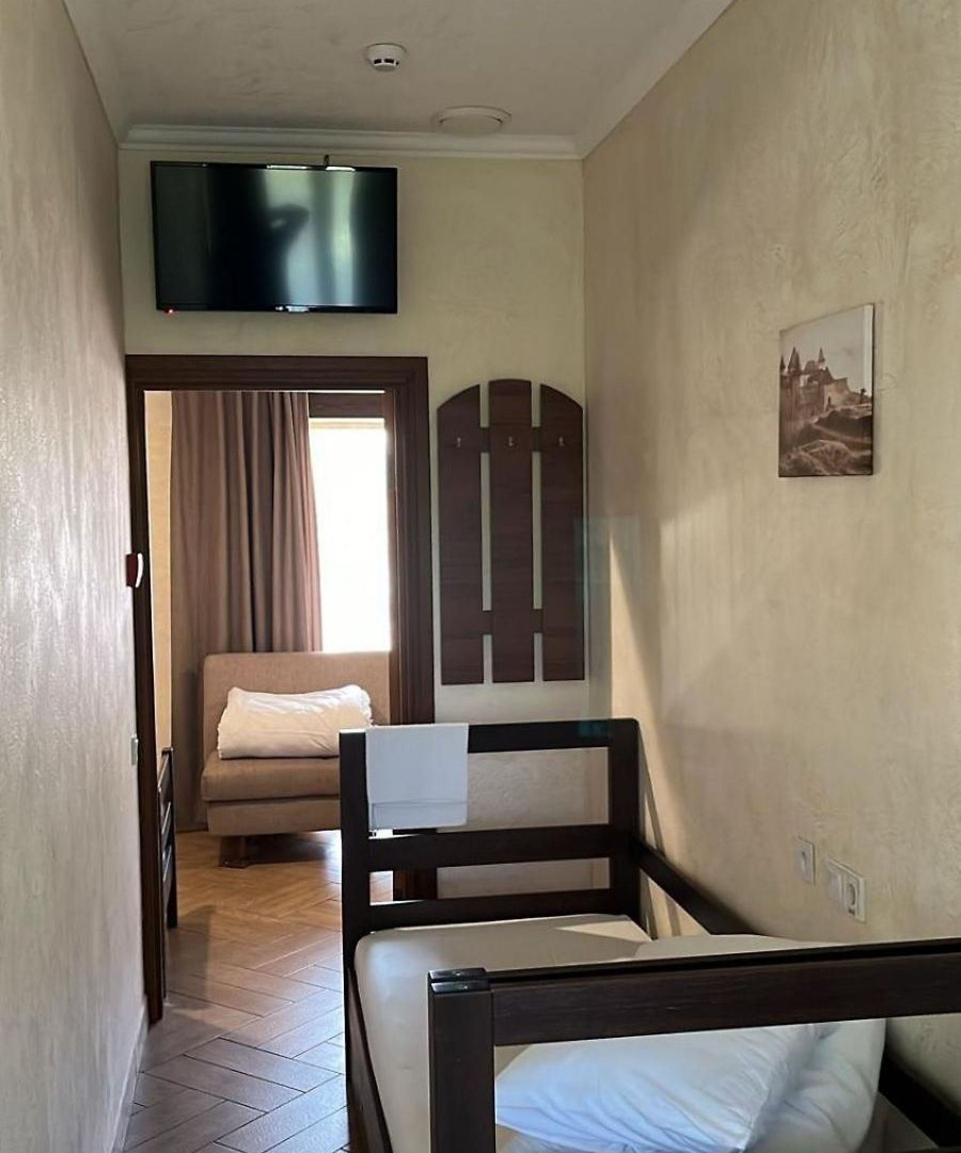 - Покращений сімейний номер з односпальним та двоспальним ліжками – від 1 000 до 1 350 гривень.