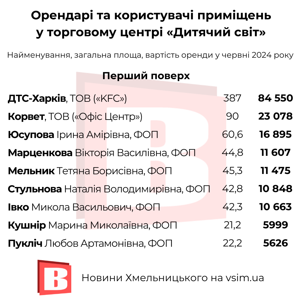 Хто і за скільки орендує приміщення у «Дитячому світі» (ІНФОГРАФІКА)