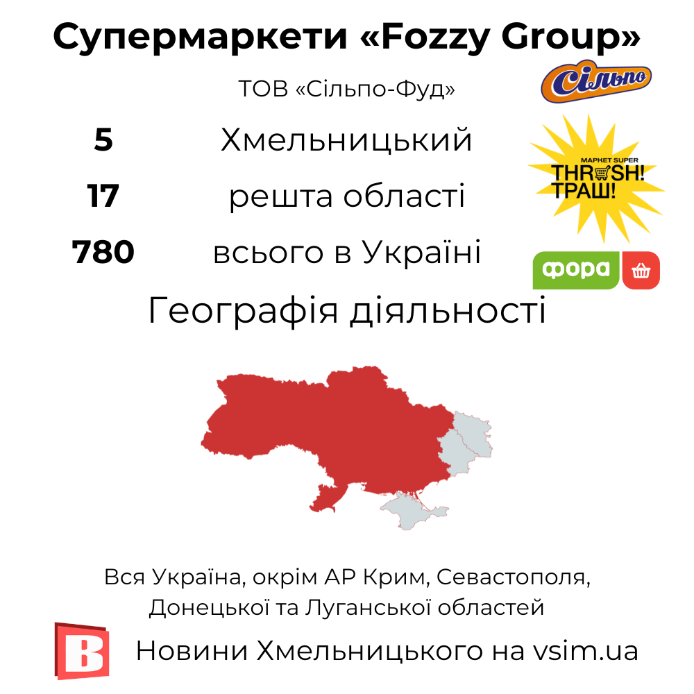 Загалом «Fozzy Group» володіє не тільки мережами «Сільпо» та «Траш», а й «Фора», «Le Silpo» «Fozzy» та «FoodPod». З останніх перелічених на Хмельниччині представлена «Фора» (Старокостянтинів та Летичів), решти в області немає.