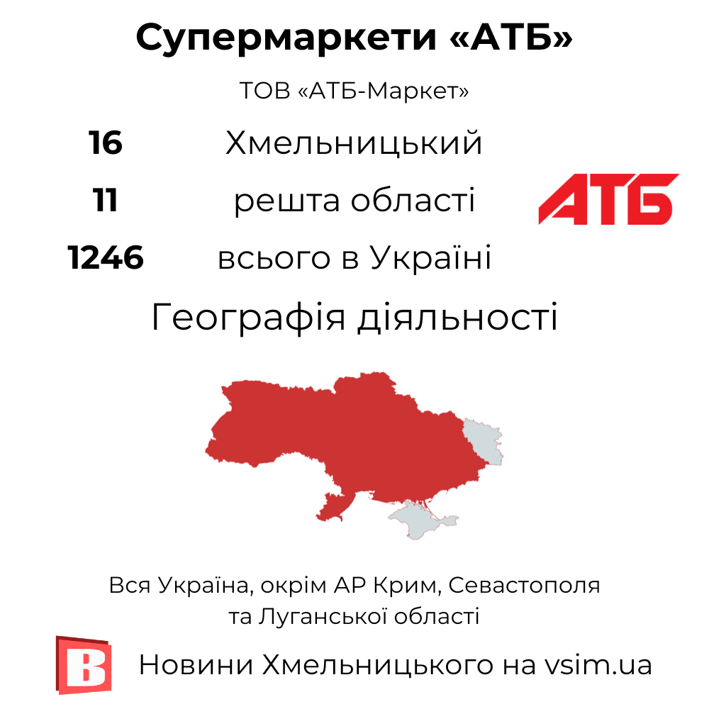 «АТБ» є найбільшою мережею супермаркетів і в Хмельницькому, і в Хмельницькій області, і в Україні. Її історія почалася 1993 року у Дніпрі, коли фірма «АгроТехБізнес» відкрила шість гастрономів. Саме від назви цієї компанії походить бренд «АТБ». До слова, один із супермаркетів «АТБ» у Хмельницькому розташований на Подільській, 25, — там же, де 1995 року відкрився перший комерційний супермаркет міста під назвою «АБС».