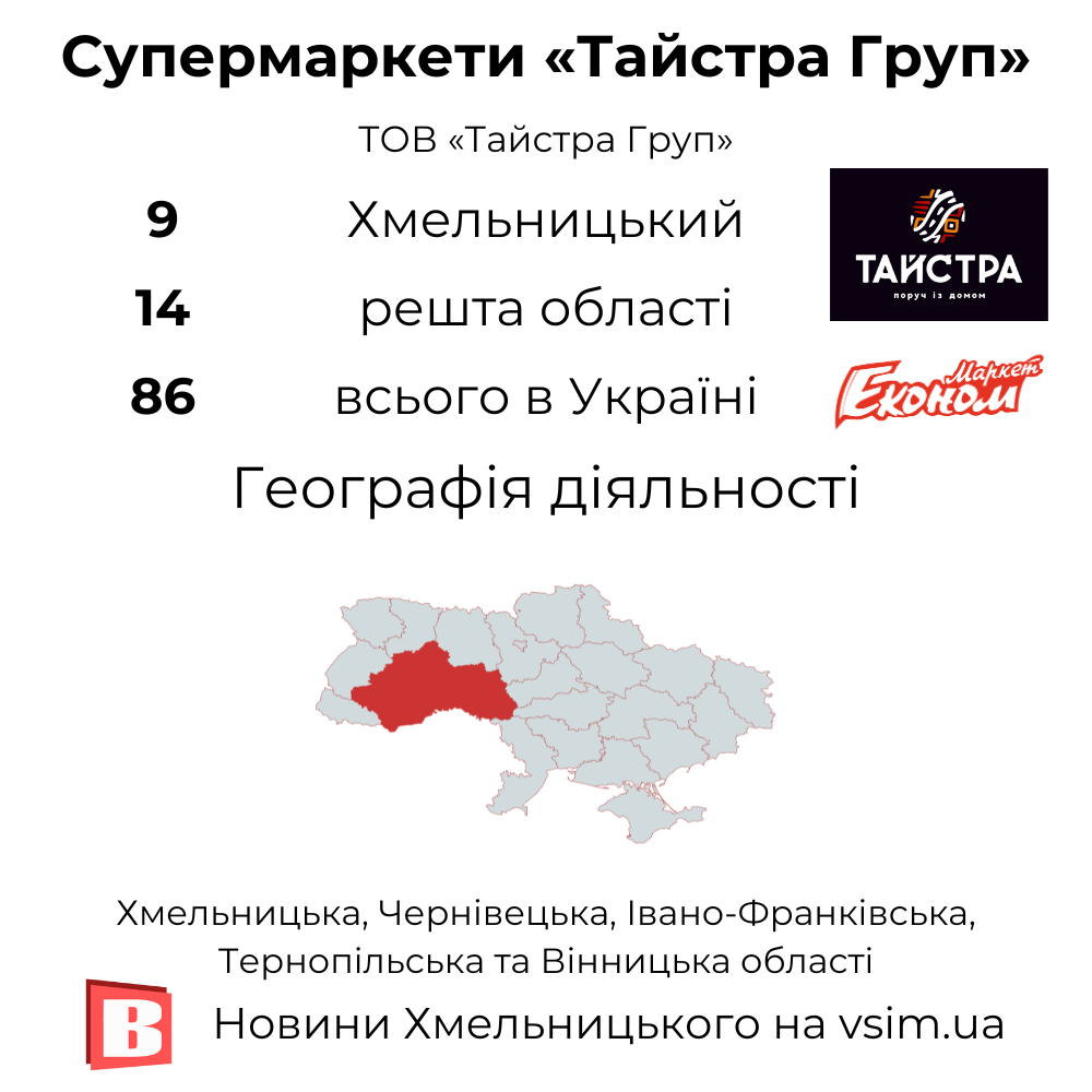 Під бренд «Тайстра» останніми роками перейшли більшість хмельницьких супермаркетів мережі «Економ». Під вивіскою останньої ще зберігається супермаркет у Лезневому на Вінницькому шосе. Судячи з сайту, «Тайстра Груп» володіє брендами «Тайстра», «Економ», «OHDE», «Норма» та «Рома». Вони працюють у Хмельницькій, Чернівецькій, Івано-Франківській, Тернопільській та Вінницькій областях.