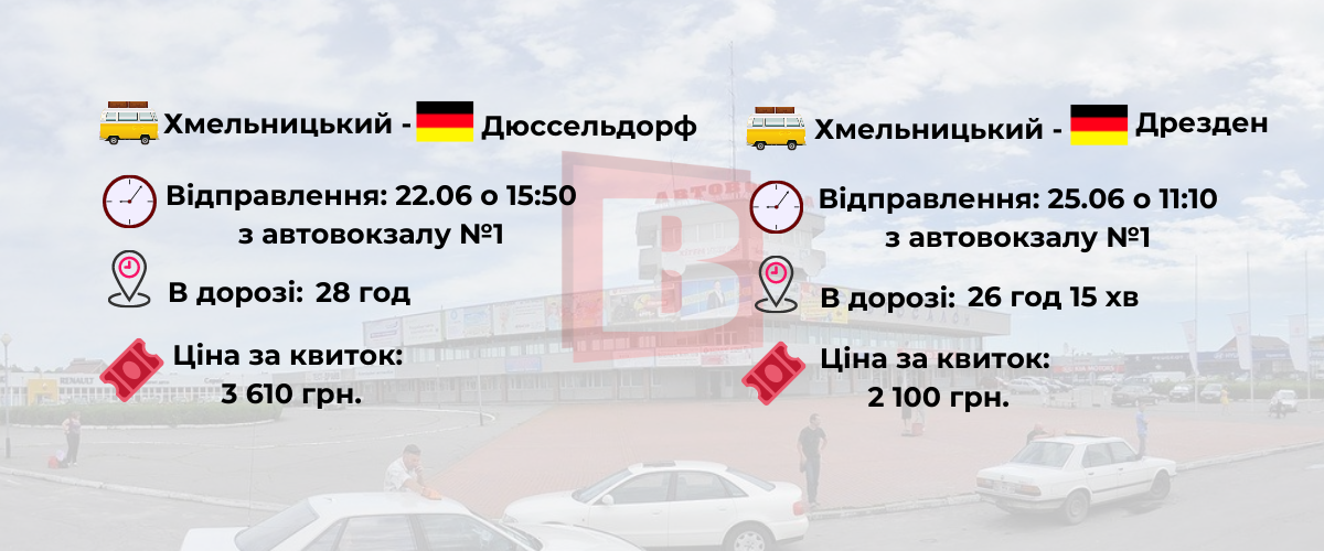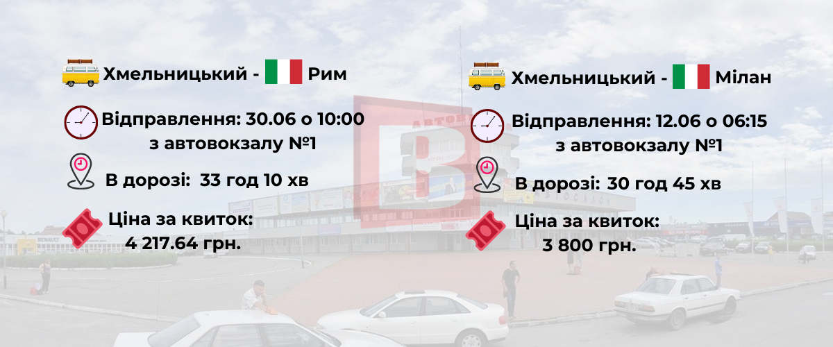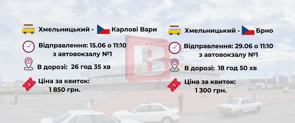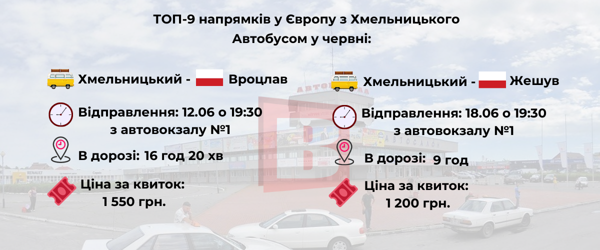 Журналістка vsim.ua дізналася, чим у червні можна доїхати до Європи з Хмельницького. Розглянула автобусні рейси від перевізників з Хмельницького, Львова, Рівного й Чернівців. Для українців доступні такі напрямки як Польща, Німеччина, Чехія та Італія.
