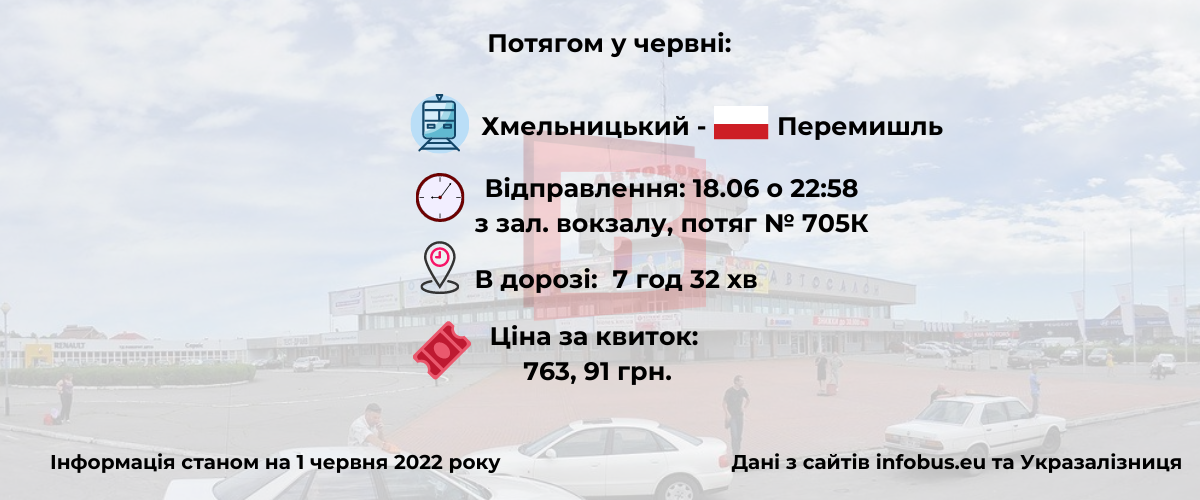 Доїхати до Європи можна і потягом. Зокрема, на сайті “Укрзалізниці” можна придбати квитки до польського міста Перемишль. Це поїзди, що їдуть з Києва та Одеси через Хмельницький.