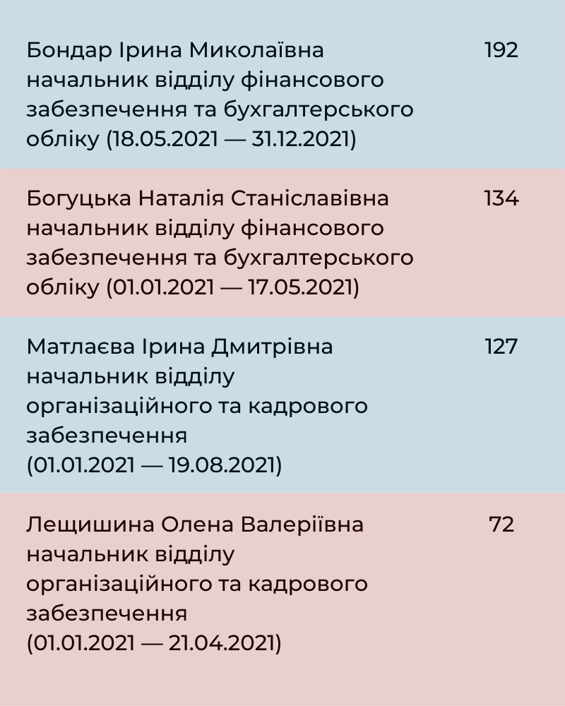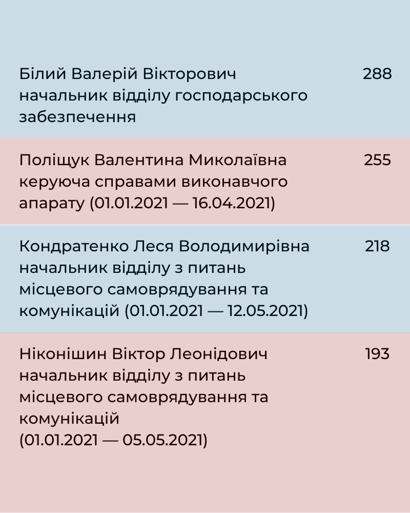 Якщо враховувати тільки тих чиновників, які працювали повний рік, то найменше зарплата була у начальника відділу господарського забезпечення Валерія Білого — понад 288 тисяч. Більше дізнавайтеся з інфографіки. Переглядайте також матеріали про зарплати керівництва міської ради та облдержадміністрації.