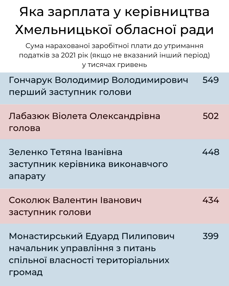 Лабазюк, Гончарук та інші: яка зарплата у топ-чиновників Хмельницької облради (ІНФОГРАФІКА)