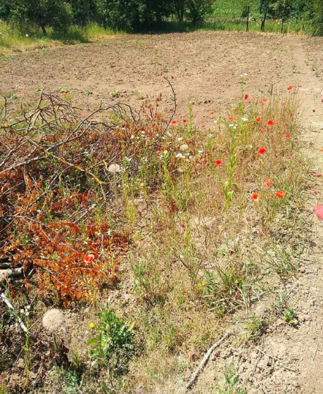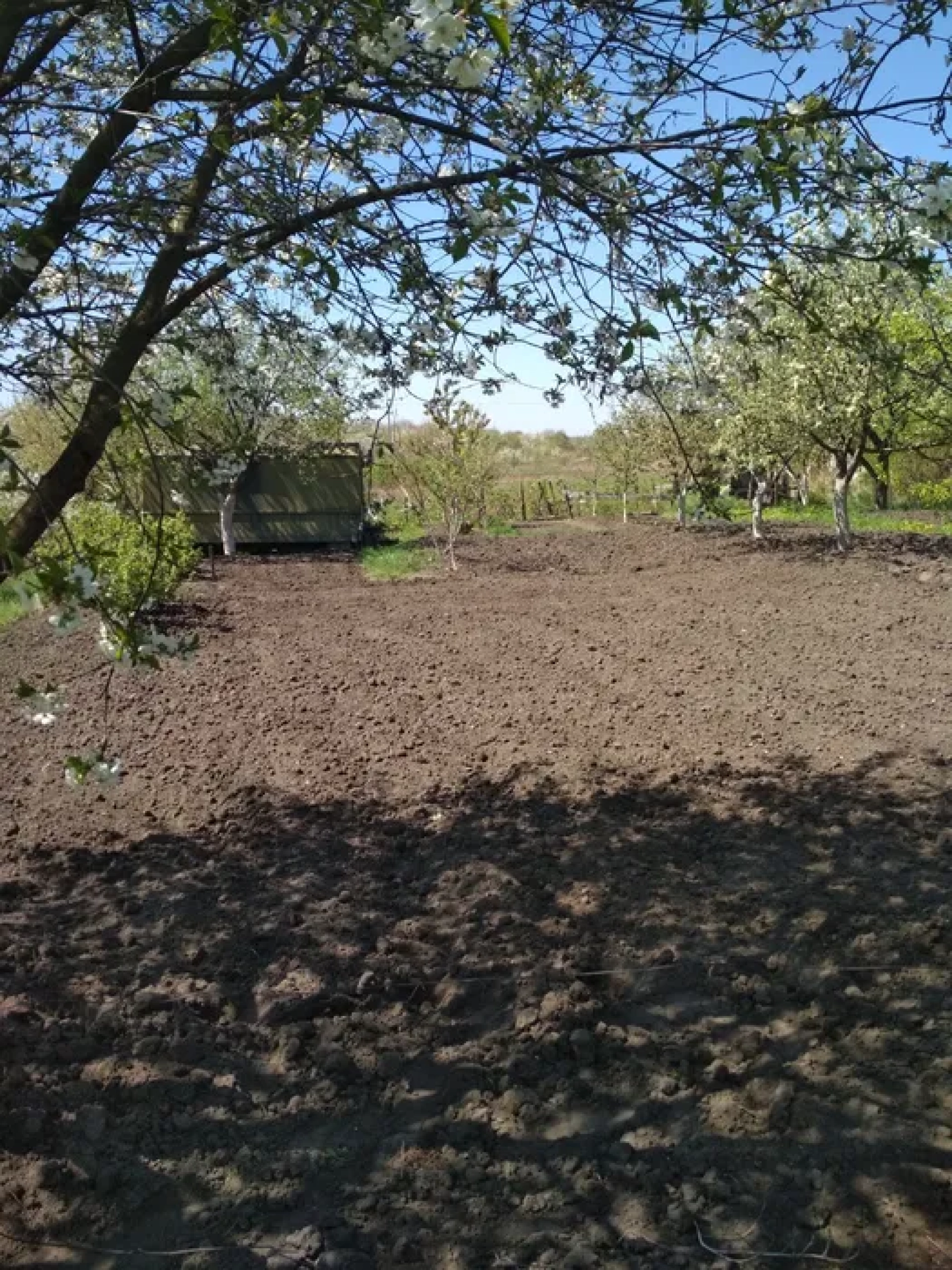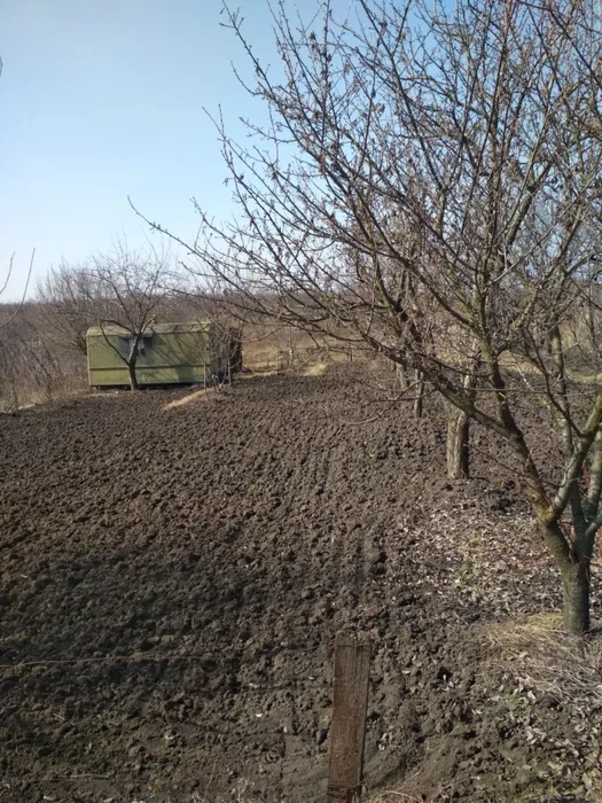Ділянка рівна. Земля підходить для сільськогосподарського призначення, є вагончик на території. Наявний кадастровий номер.