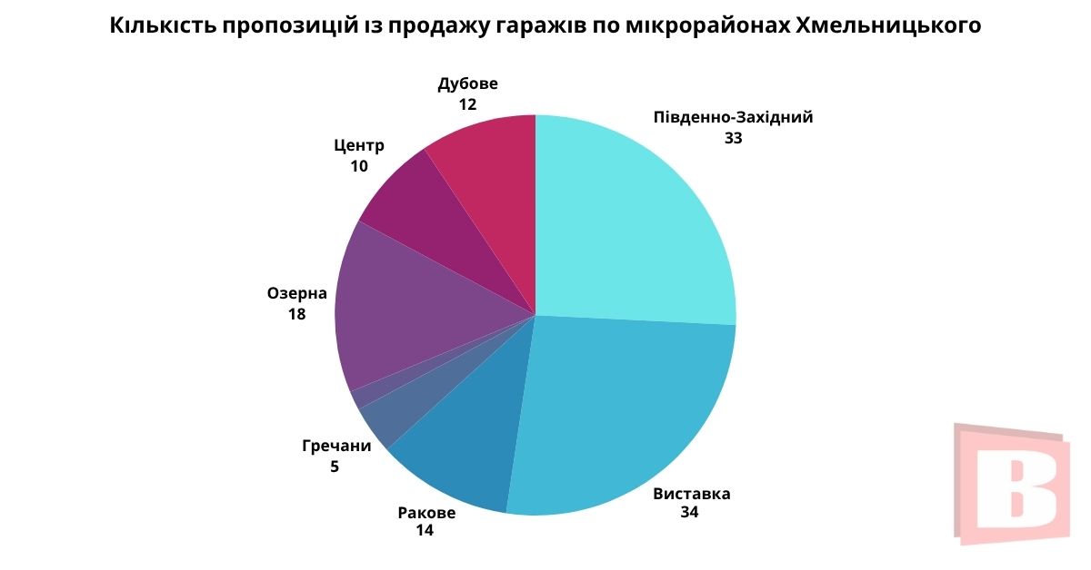 Проаналізувавши сайт DIM.RIA бачимо, що найбільше пропозицій у мікрорайоні Виставка. Наразі доступні для продажу 34 гаражі. Найменше — на Загот Зерно. Всього 2 пропозиції. Взагалі не розміщенні оголошення щодо продажу в Лезневе, Книжківцях та на Ружичній.