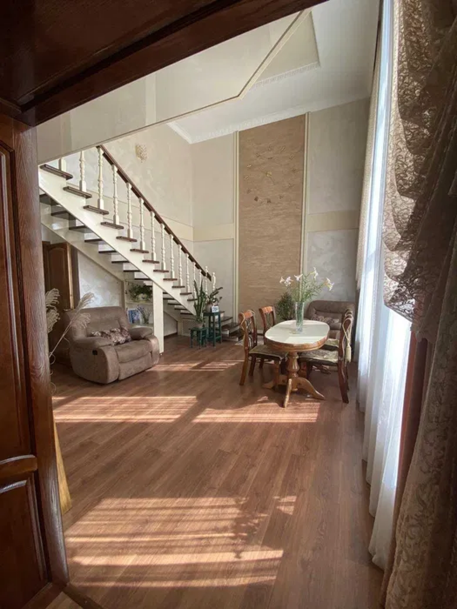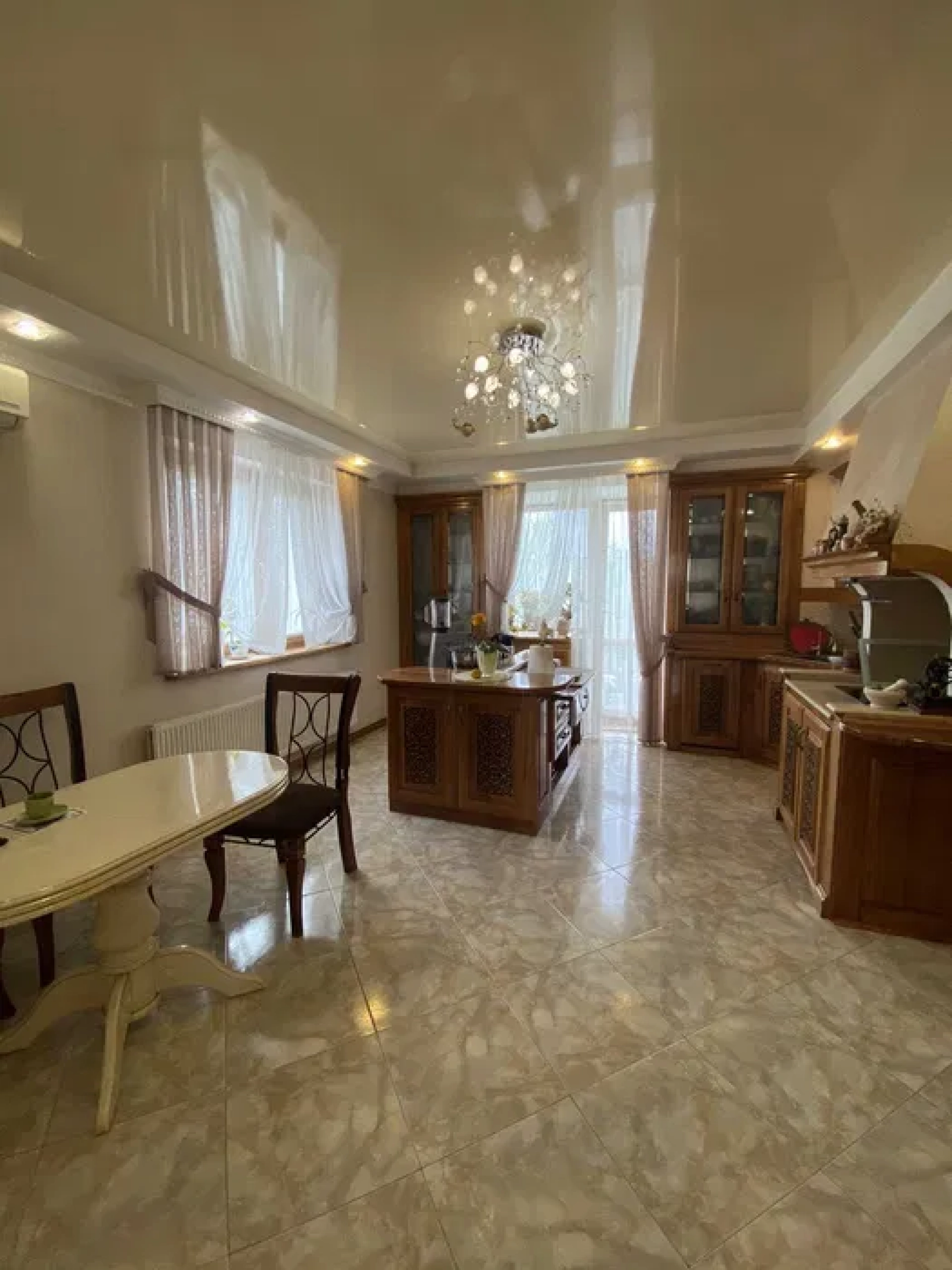 Також є цокольний поверх із кухнею, санвузлом, котельнею і підсобним приміщенням. При купівлі новим власникам залишають всі меблі і техніку.