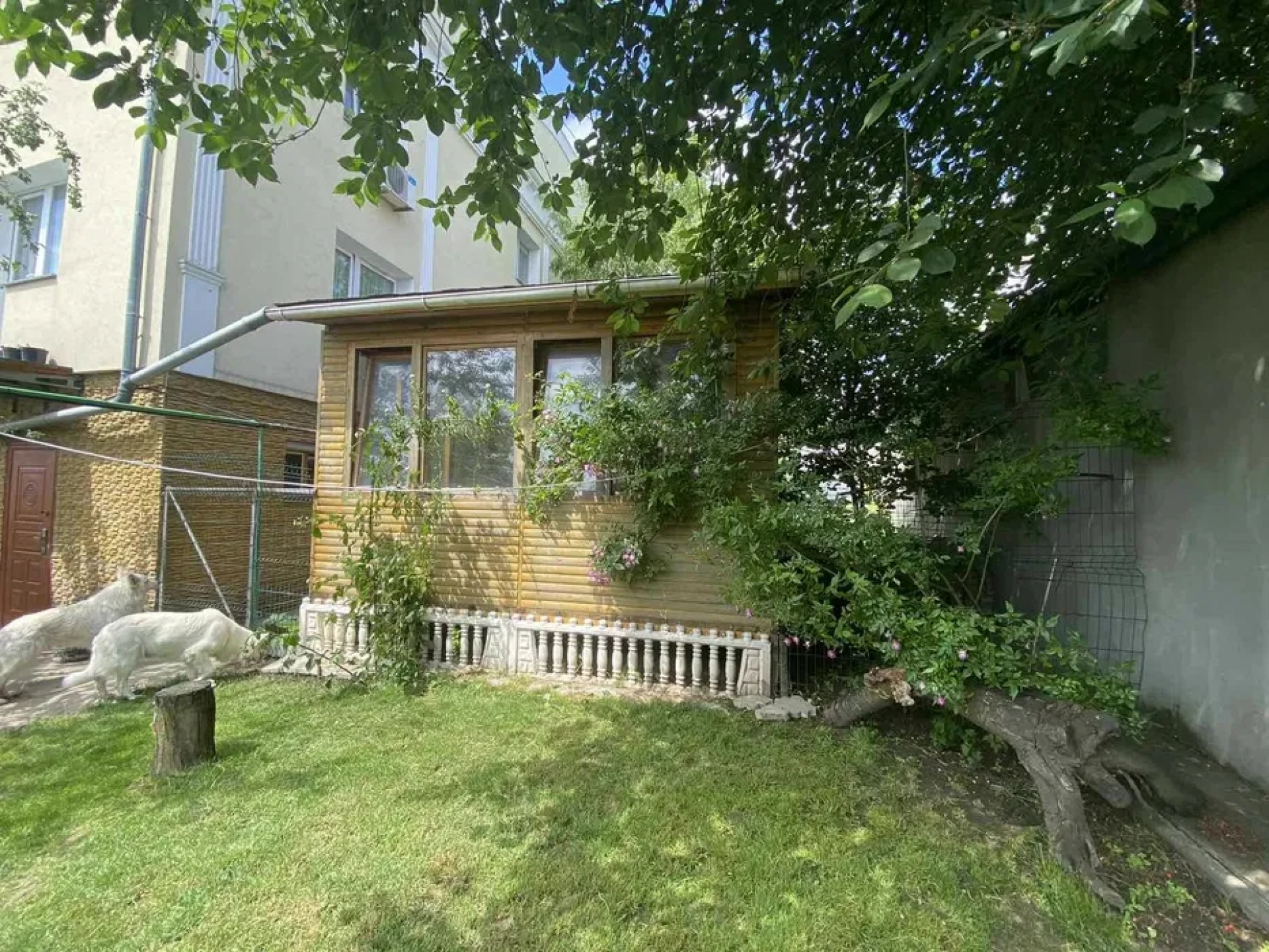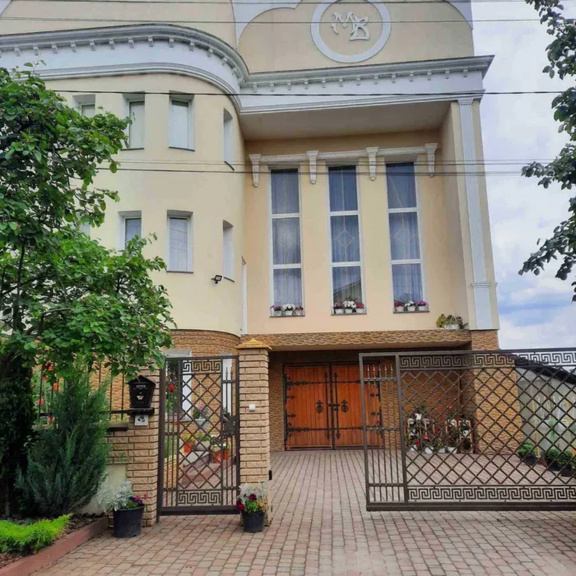 Триповерховий, всередині на майже 270 квадратних метрів. Зроблений авторський ремонт з дизайнерськими дерев’яними меблями. Є багатий прибудинковий благоустрій: зона відпочинку з літнім будиночком, мангал, вольєр, стаціонарна теплиця з комунікаціями, сад, газони.