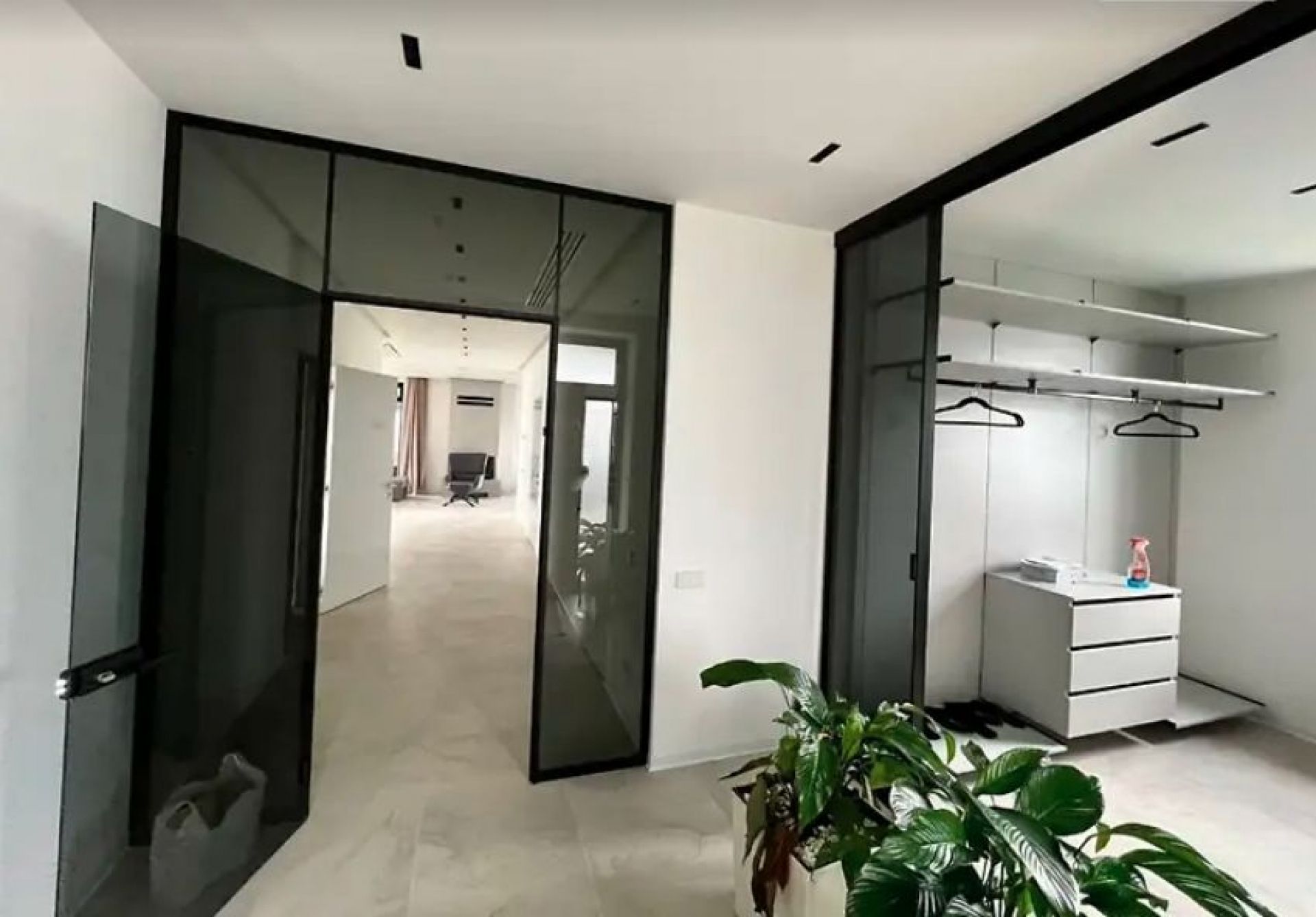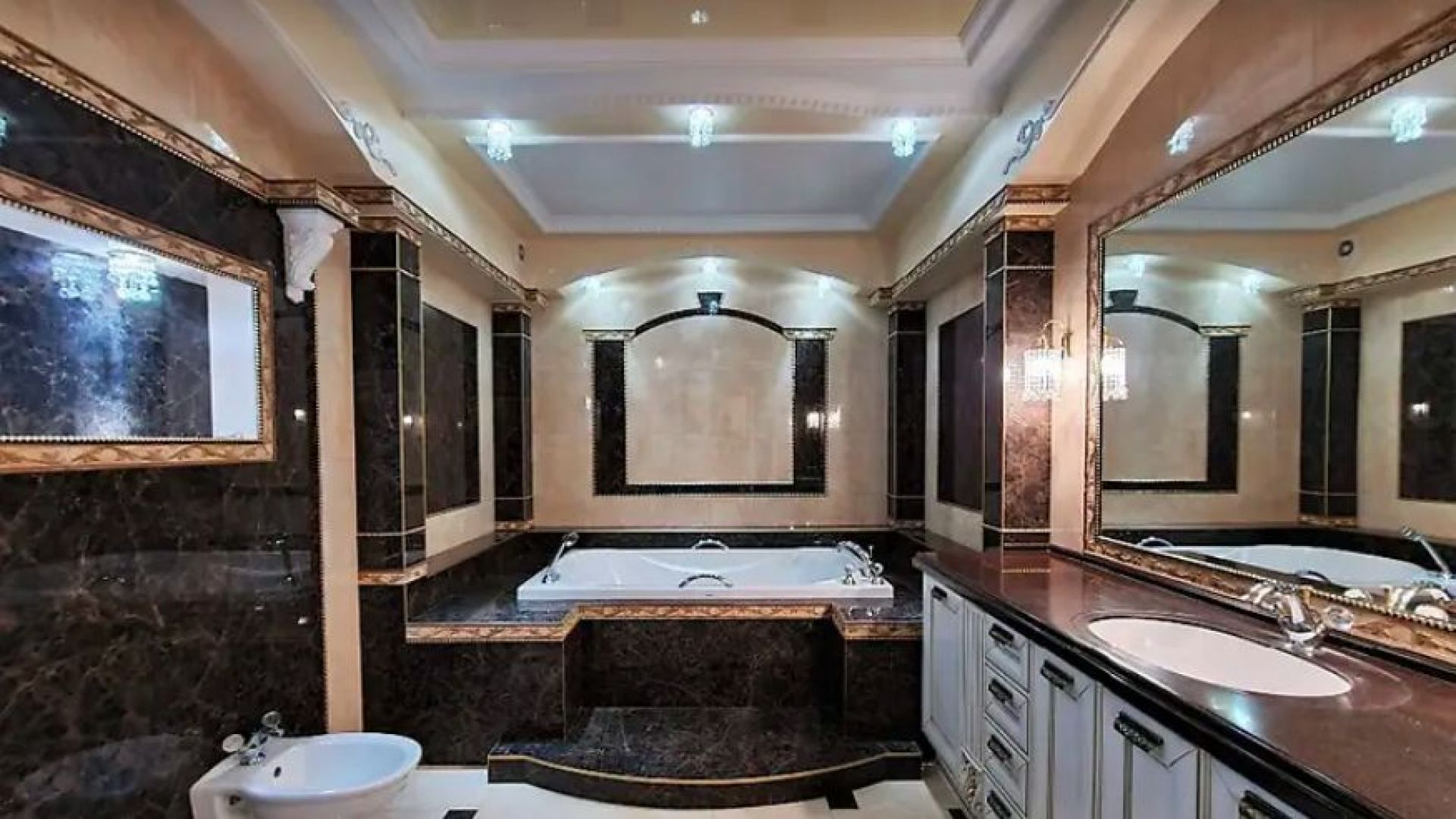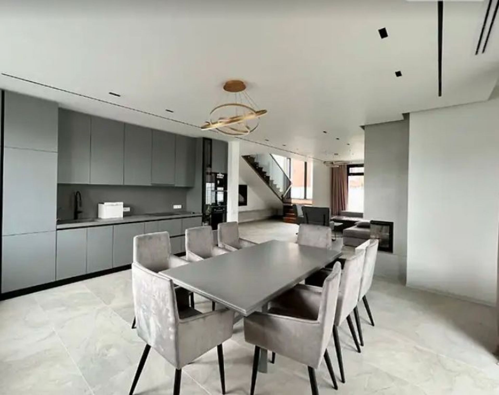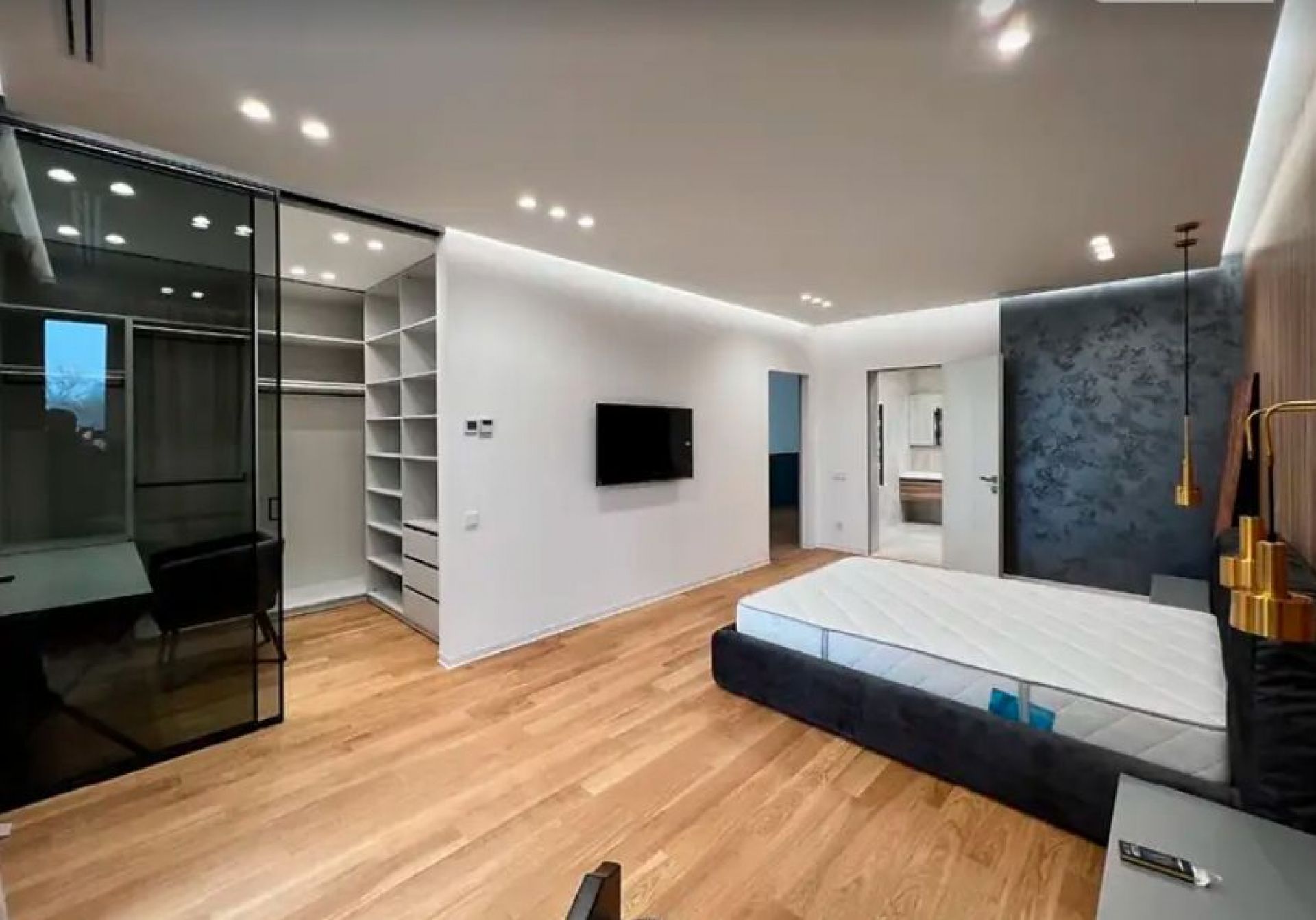 Всередині є три спільні, кабінет з панорамним вікном, кухня, гостьова з каміном, гардероб, багато санвузлів. Ремонт тут робили з 2020 по цей рік. Все меблі залишають новим власником.