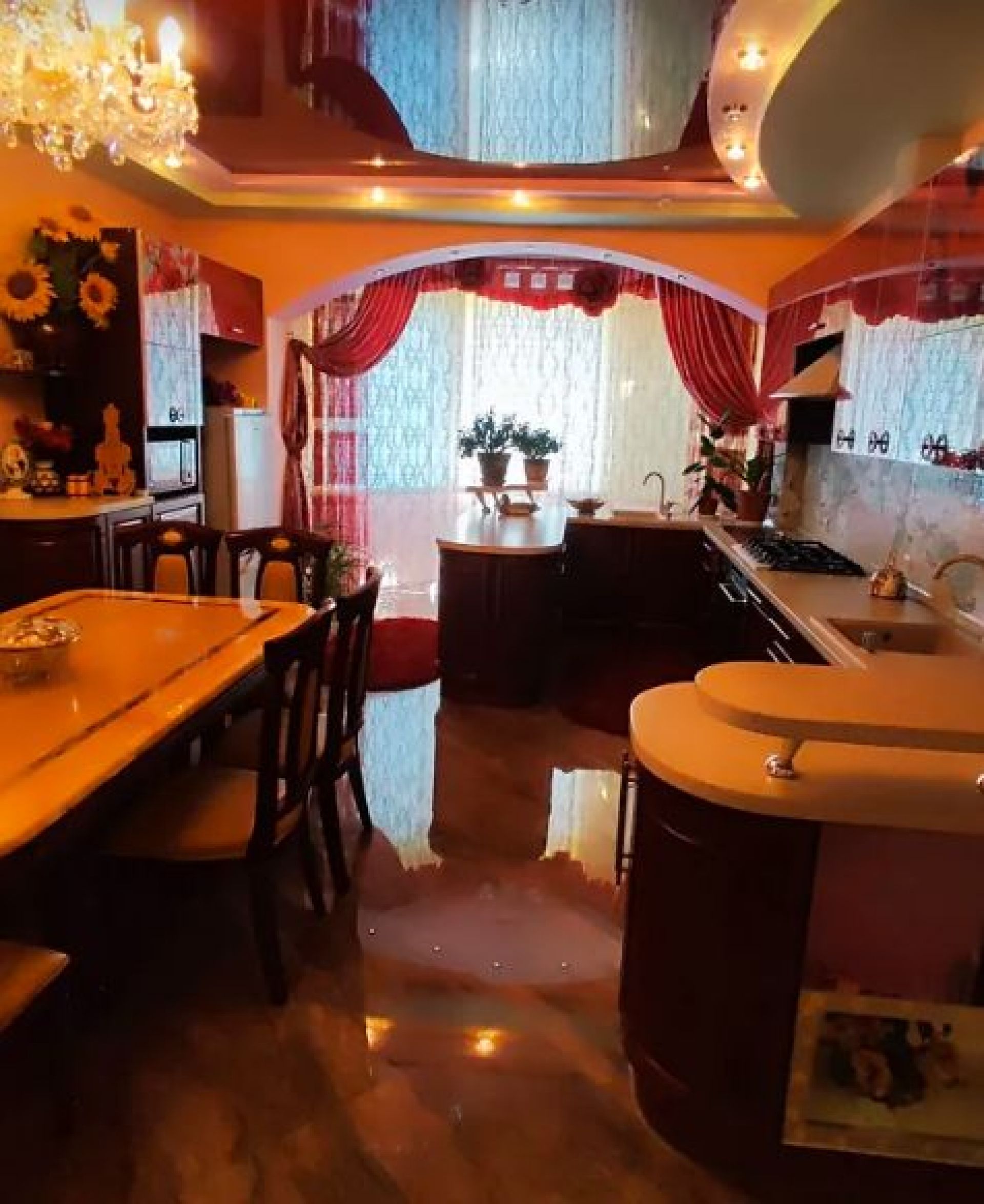 В будинку зроблений дизайнерський ремонт, меблі - з натурального дерева.