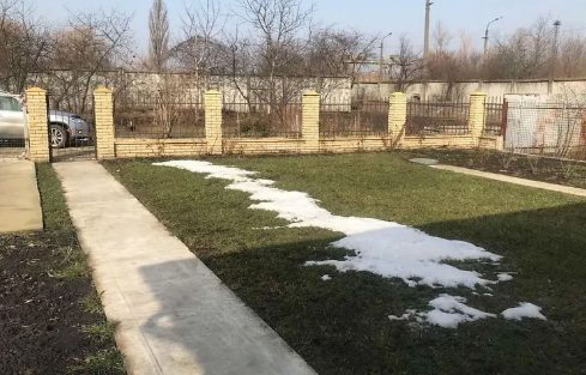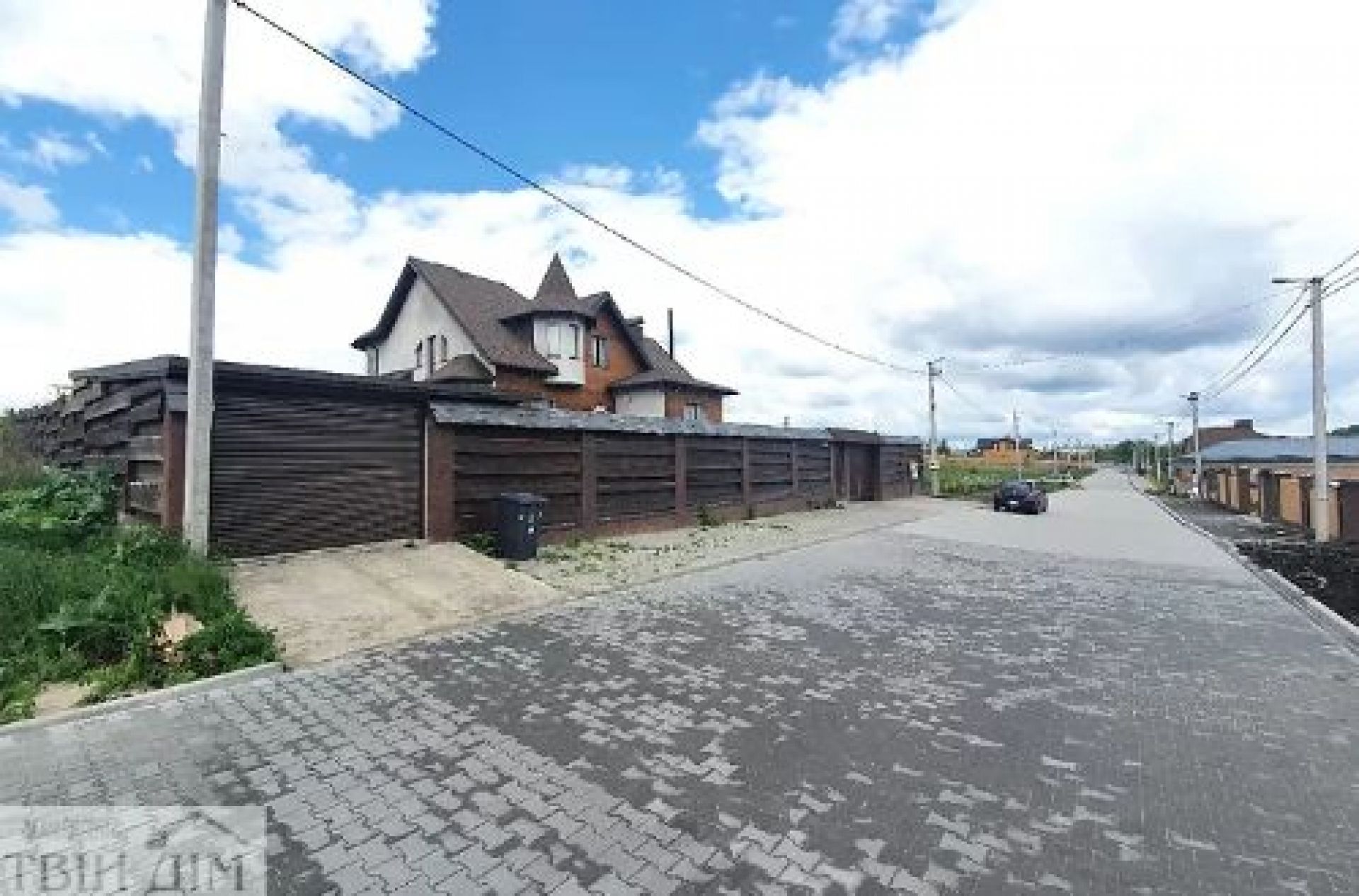 Приватний будинок з цегли має 4 кімнати. Серед комунікацій електрика, газ, каналізація - септик. Є 3 санвузли, гараж, балкон. На території є доріжки, тротуарна плитка, дерев’яний паркан й автоматичні ворота.