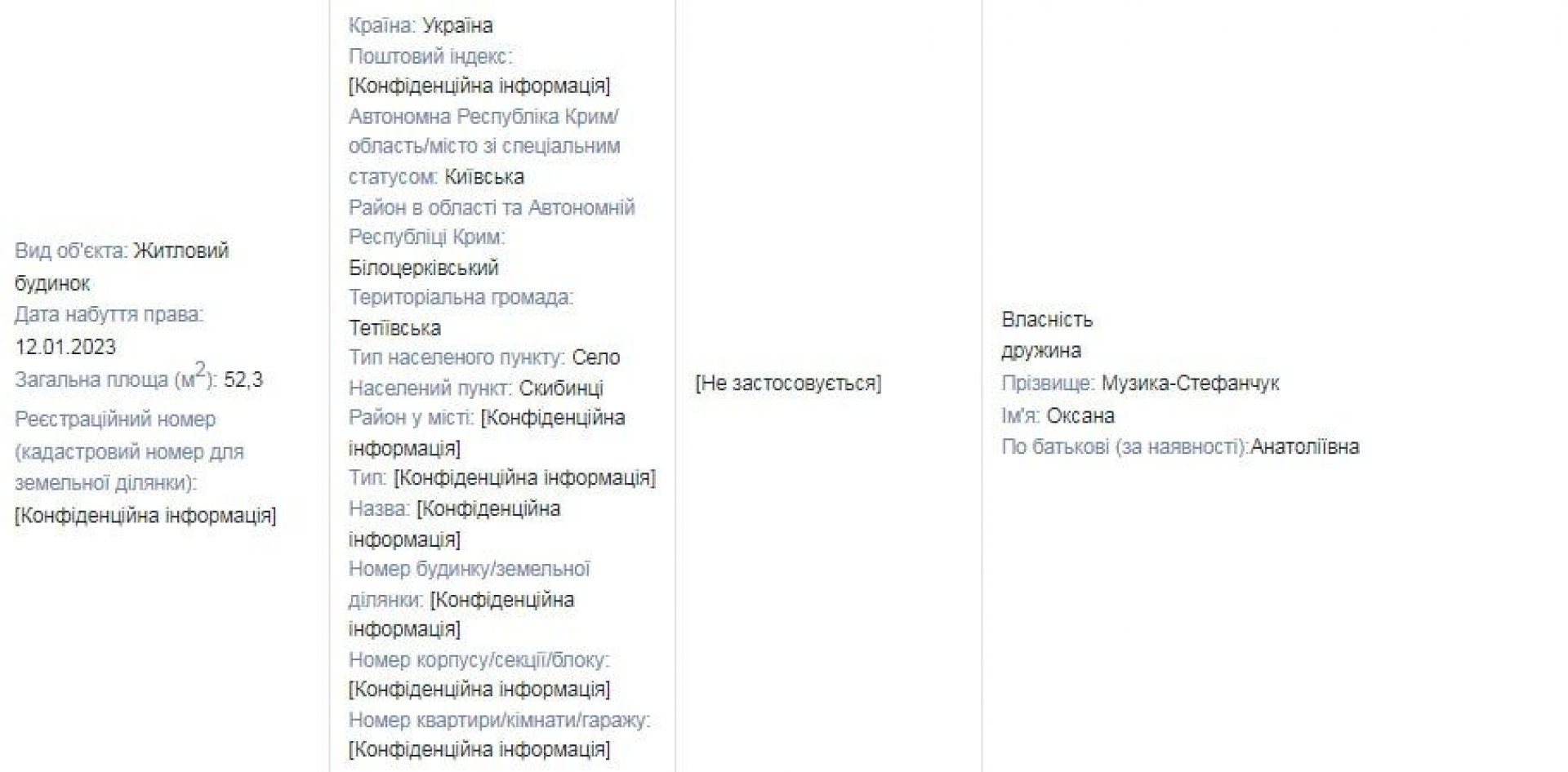 У 2023-ому родина Стефанчуків придбала чимало нерухомого майна – все записане на дружину Оксану Музику–Стефанчук. Відтак, кохана нардепа тепер володіє 4 земельними ділянками на Київщині, зокрема: