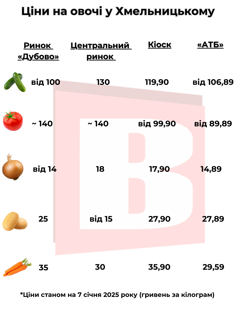 Для порівняння журналістка vsim.ua відвідала продовольчі ринки, овочевий кіоск та супермаркет. Цінники у різних локаціях відрізняються в межах 10 гривень. Обрали найпопулярніший набір овочів. Отож, дізнавайтесь, де дешевше і переглядайте інфографіку.