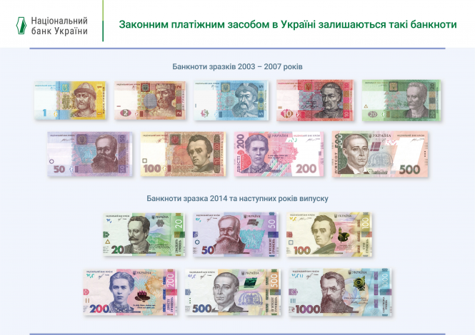 Вони є і будуть надалі дійсними платіжними засобами, і їх зобов’язані приймати всі торгові точки та надавачі послуг. Якщо вони потраплятимуть у банки, ті не повертатимуть їх в обіг, а передаватимуть в НБУ на утилізацію. Натомість Нацбанк випускатиме в обіг новіші гроші замість знищених.