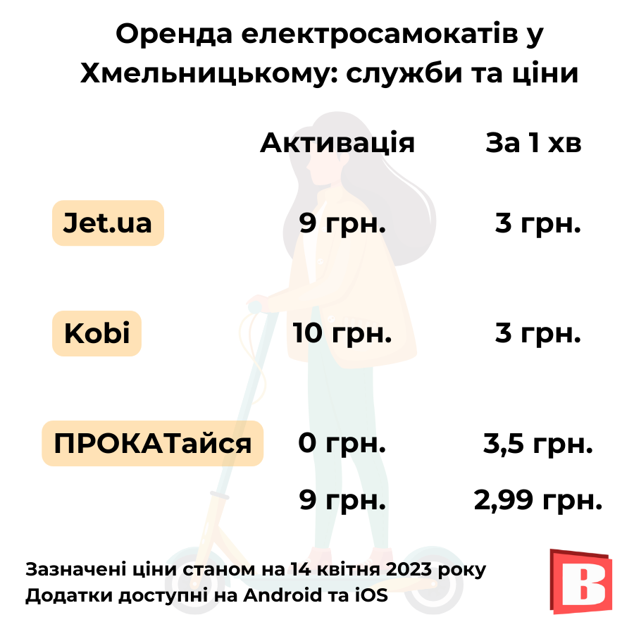 - У Хмельницькому є 3 служби, що пропонують оренду електросамокатів.