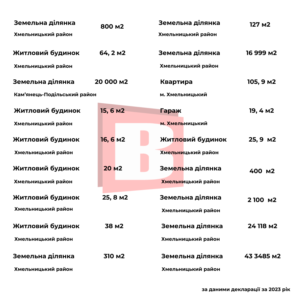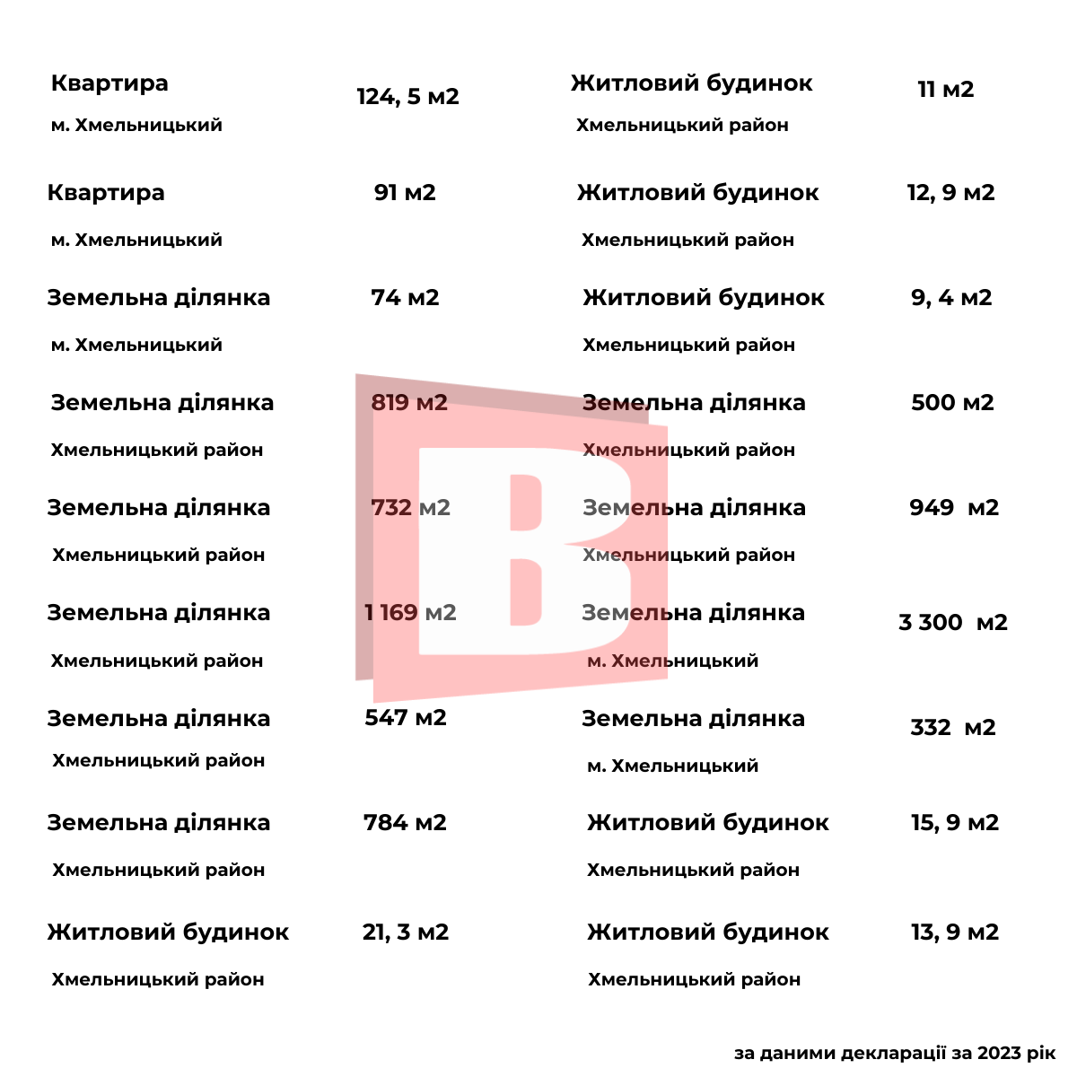 Крім того, Тетяна Крупа є власником двох дачних будинків, які ще будуються. А її чоловік – має спільну сумісну власність на житловий будинок в Хмельницькому, який теж є об’єктом незавершеного будівництва.