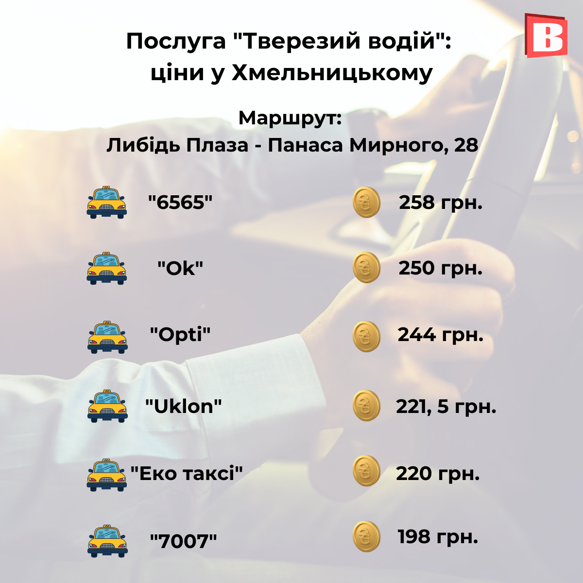 Послуга “Тверезий водій”: дізналися ціни у Хмельницькому