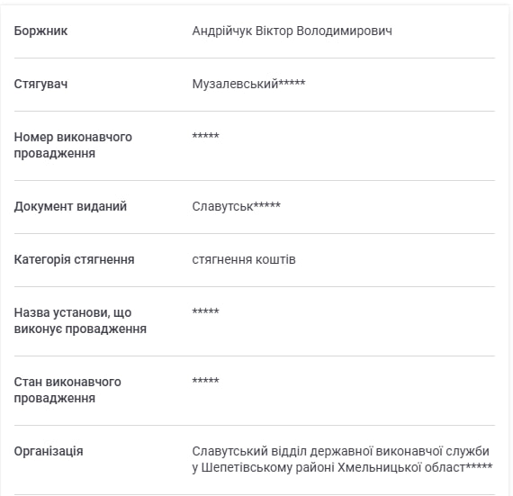 Олександр Музалевський не задекларував грошові активи, позичені третім особам, які йому не повернули станом на 31 грудня 2024 року. НАЗК отримало відомості від департаменту державної виконавчої служби Мін’юсту України, згідно із якими 59 осіб заборгували йому 1 916 282,72 грн. Суми різні: від 100 грн до 423 052 грн (10 000 доларів та 2 662 грн). Якщо говорити про найбільшу позику, то її отримав Андрійчук Віктор. У відкритих джерелах журналістка ВСІМ знайшла інформацію про відповідне виконавче провадження щодо стягнення цих коштів.