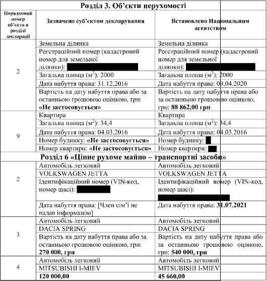 Окрім вище описаного, НАЗК також встановило, що декларант вказав невірні відомості щодо вартості авто, не зазначив ціну земельної ділянки та не правильну дату її купівлі й інше.