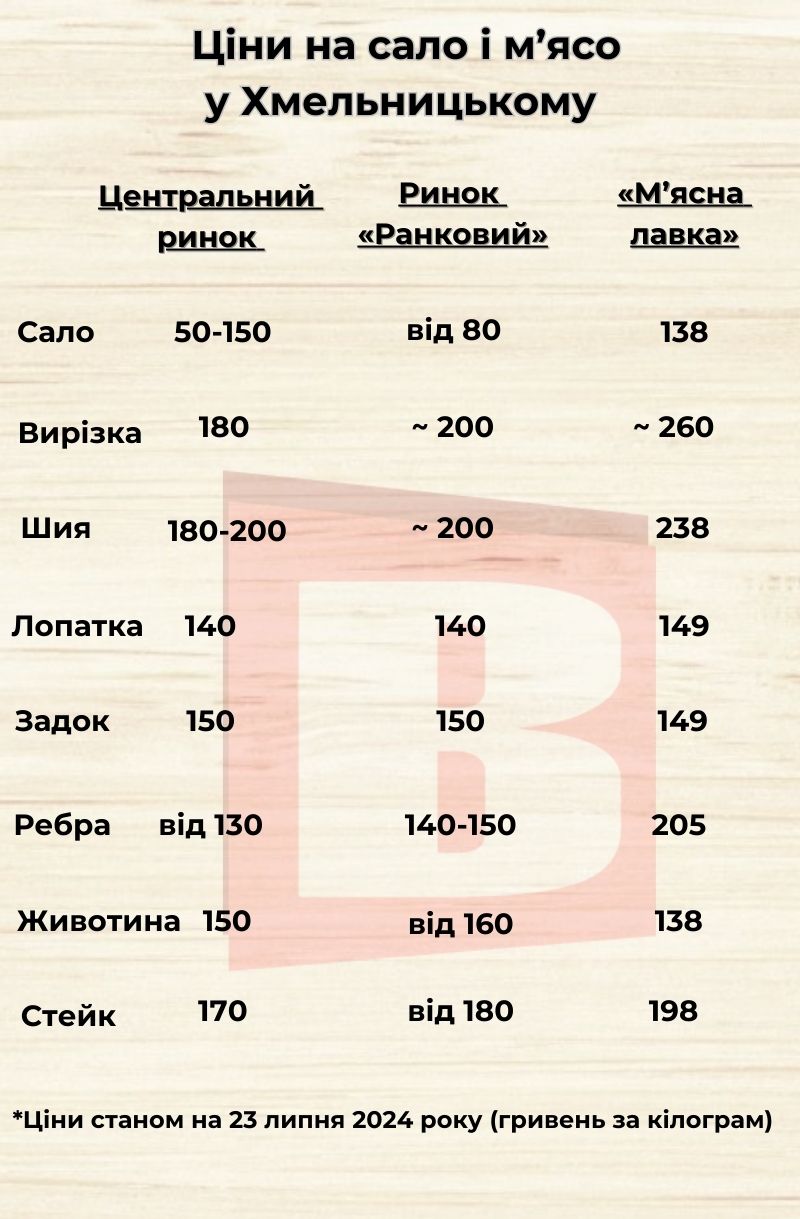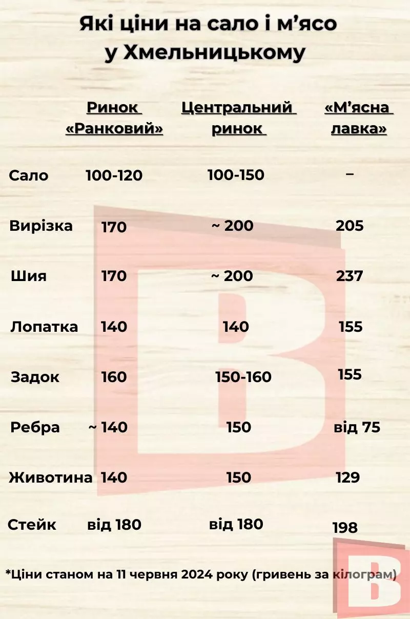 Для порівняння журналістка відвідала два павільйони на центральному ринку, а також «Ранковому» біля Кам’янецького переїзду. Також дізнались ціни у м’ясному магазині мережі.