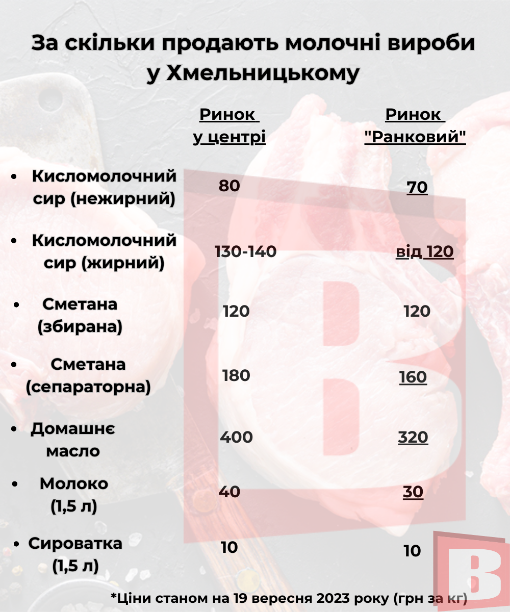 Отож, за нашими спостереженнями, за “молочкою” слід вирушати на продовольчий ринок. Якщо ж порівнювати ціни на двох, то дешевше хмельничанам молочні вироби обійдуться на “Ранковому”.