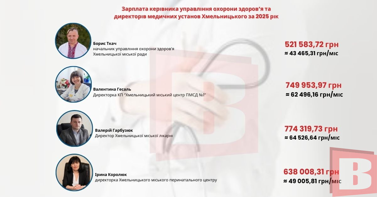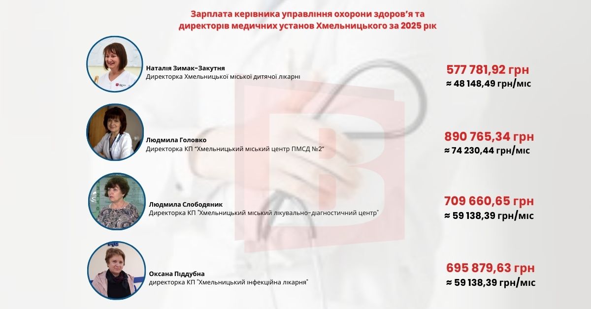 Скільки заробили головні медики Хмельницького у 2025 році (ІНФОГРАФІКА)