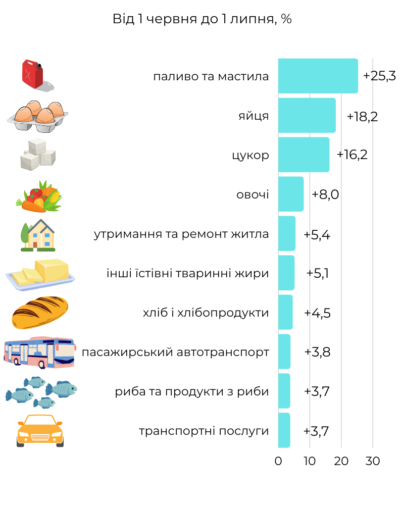 Рейтинг груп товарів, які зросли у ціні найбільше, переглядайте в інфографіці.