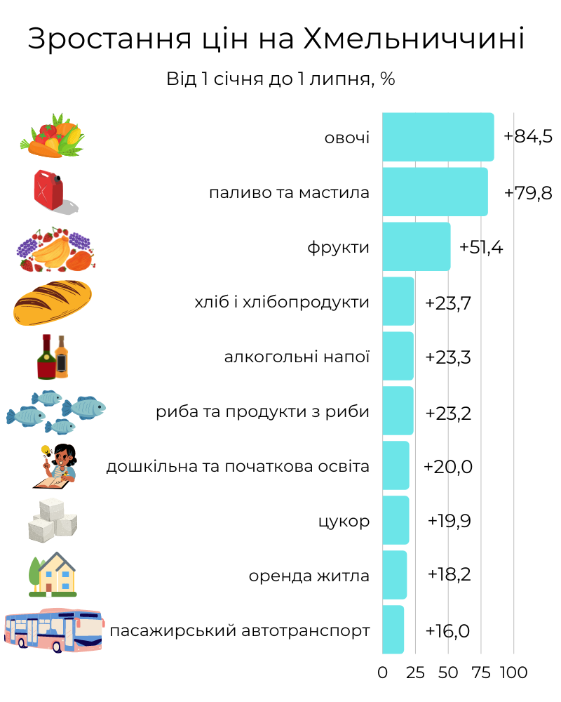 ТОП-10 товарів і послуг, які здорожчали на Хмельниччині за пів року (ІНФОГРАФІКА)